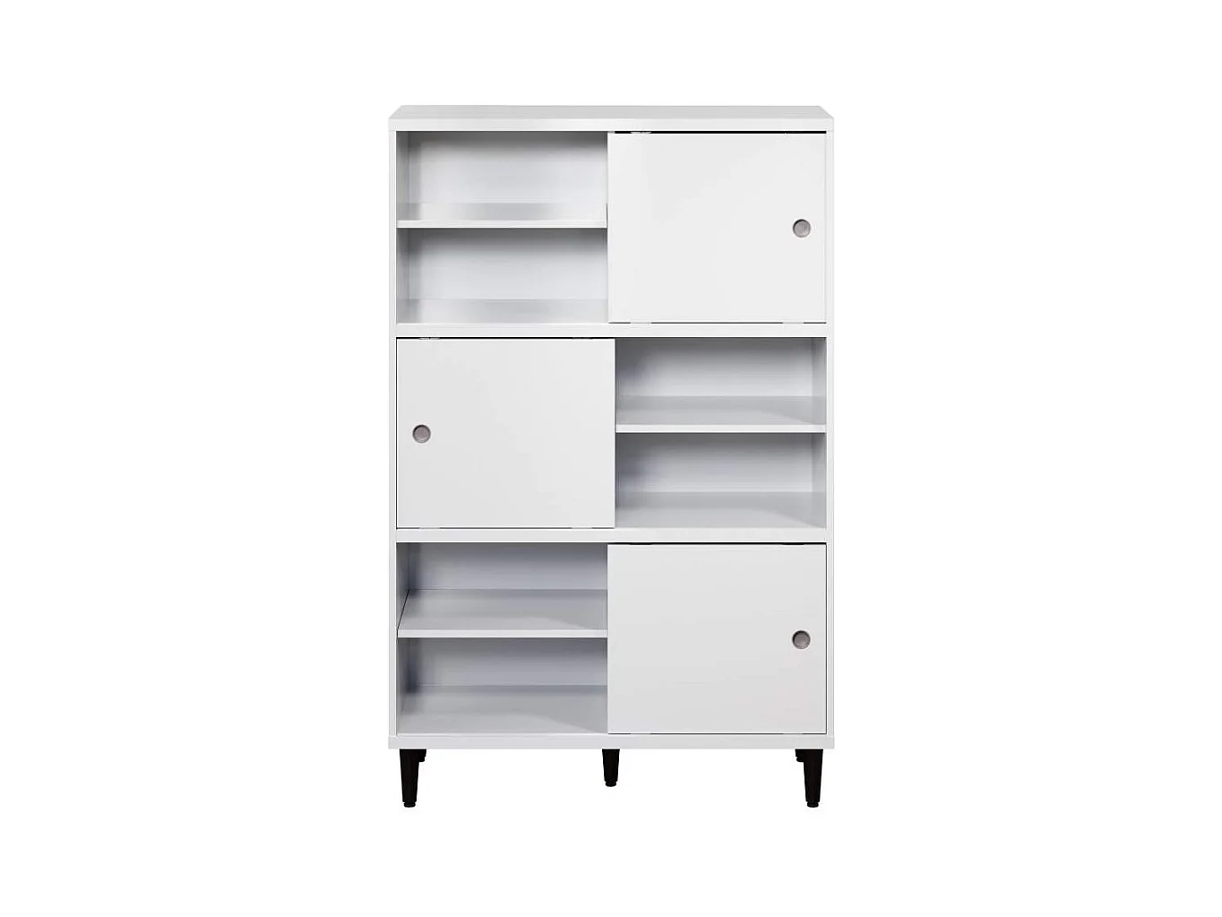 Evolution bibliothèque 3 portes, 6 étagères blanc, noir.