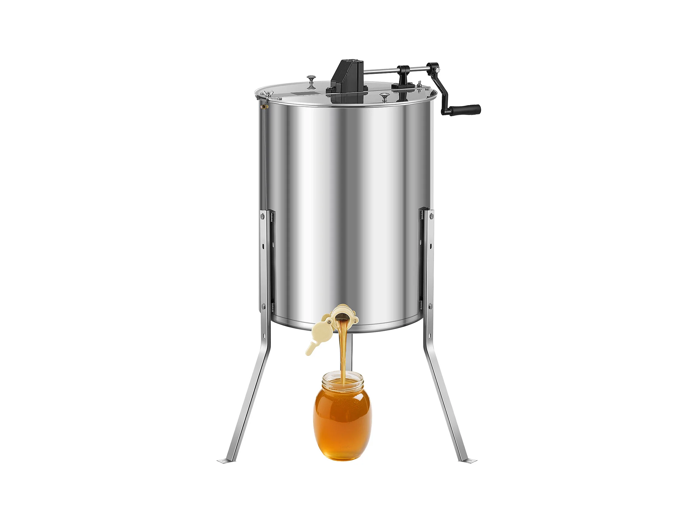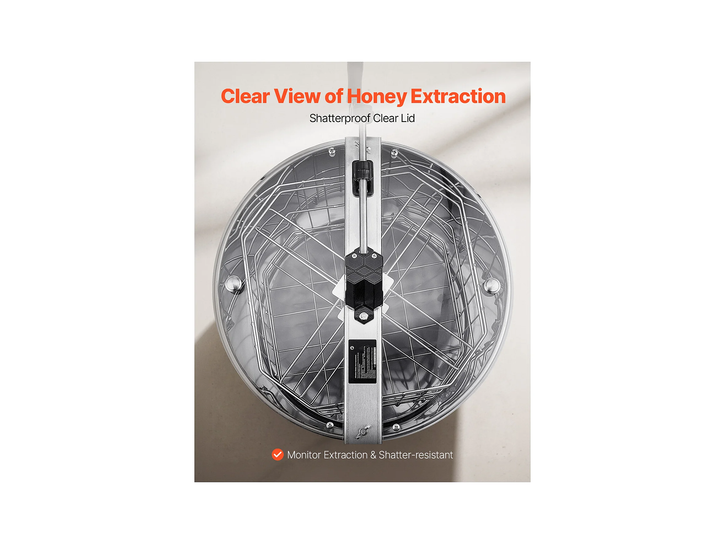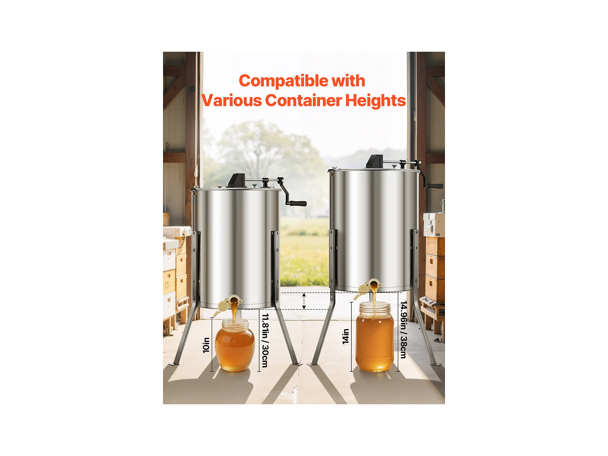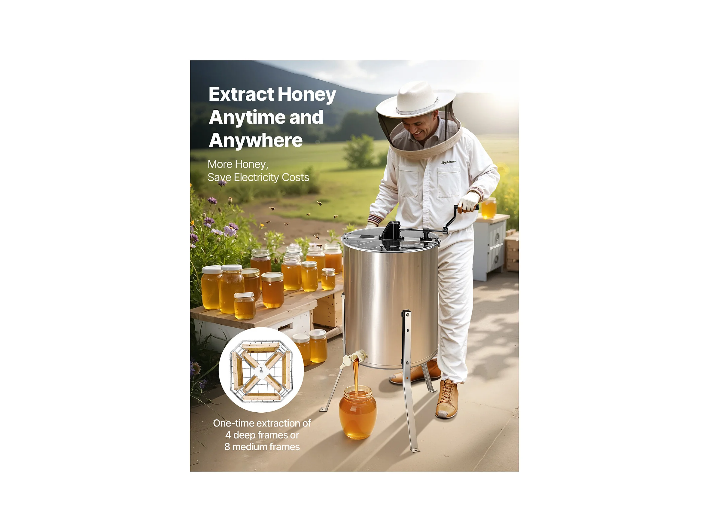 Extracteur de Miel Manuel à 4/8 Cadres SucceBuy Centrifugeuse Séparateur de Miel en Acier Inoxydable avec Couvercle Transparent, Support Réglable en Hauteur
