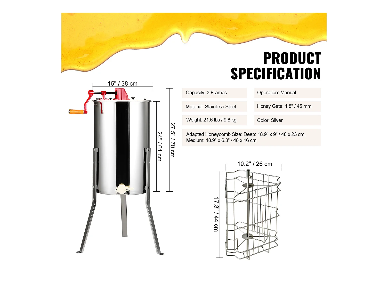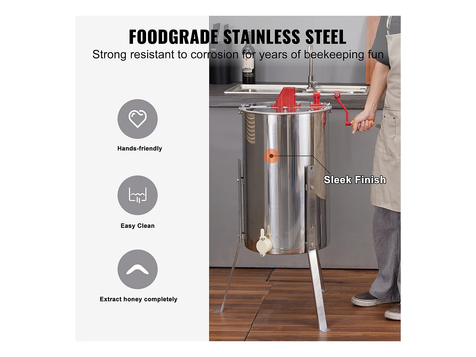 Extracteur de Miel SucceBuy Manuel Matériel D'apiculture 3 Cadres en Acier Inoxydable