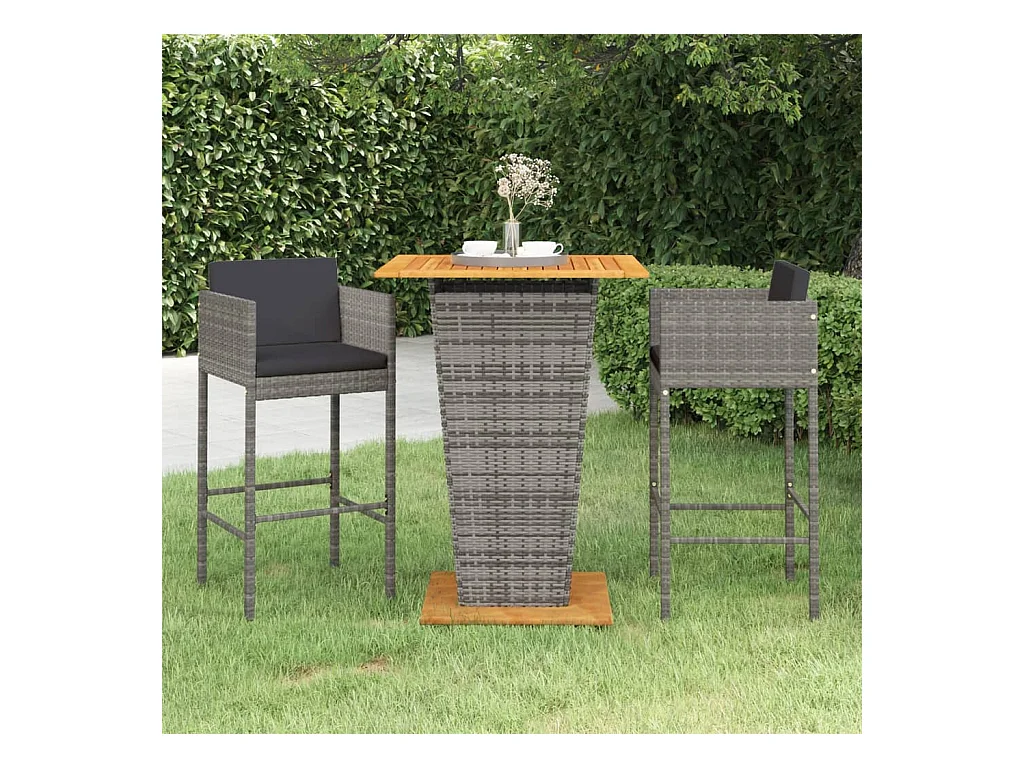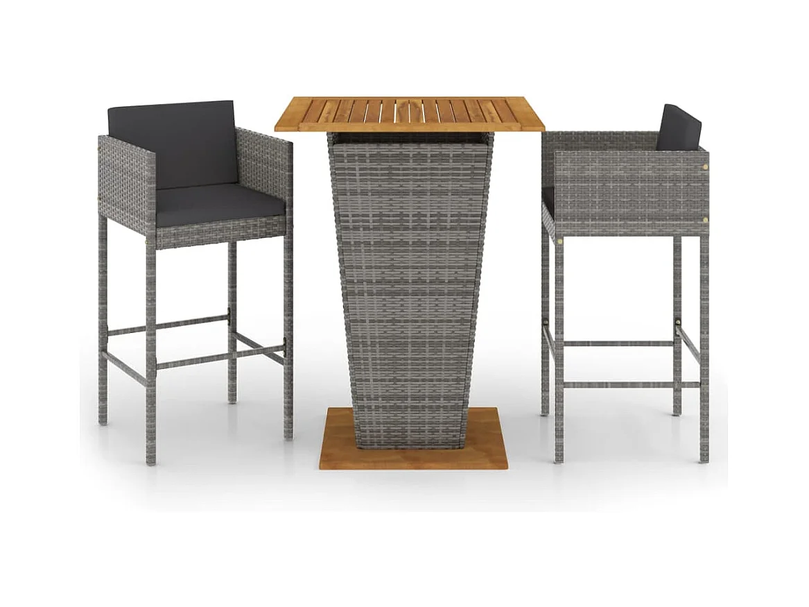 Pierre-Guillaume Ensemble de bar jardin 3 pcs gris poly rotin/bois massif acacia