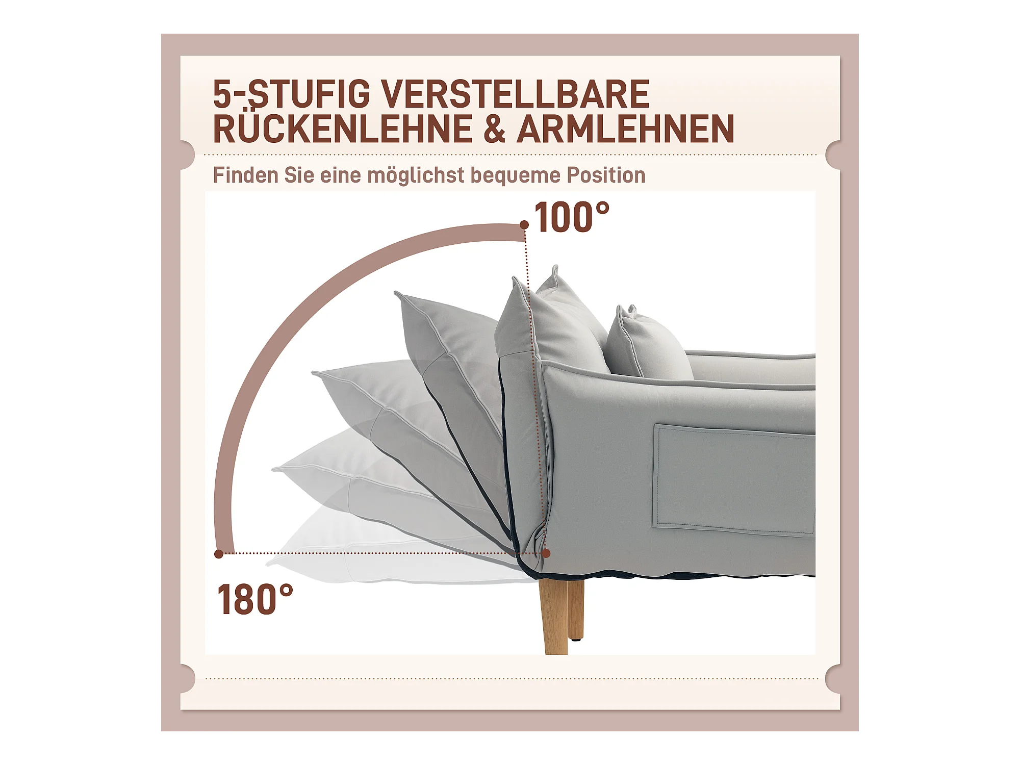 Fauteuil convertible avec coussin, dossier réglable 6 positions, velours gris (72x78x79cm)