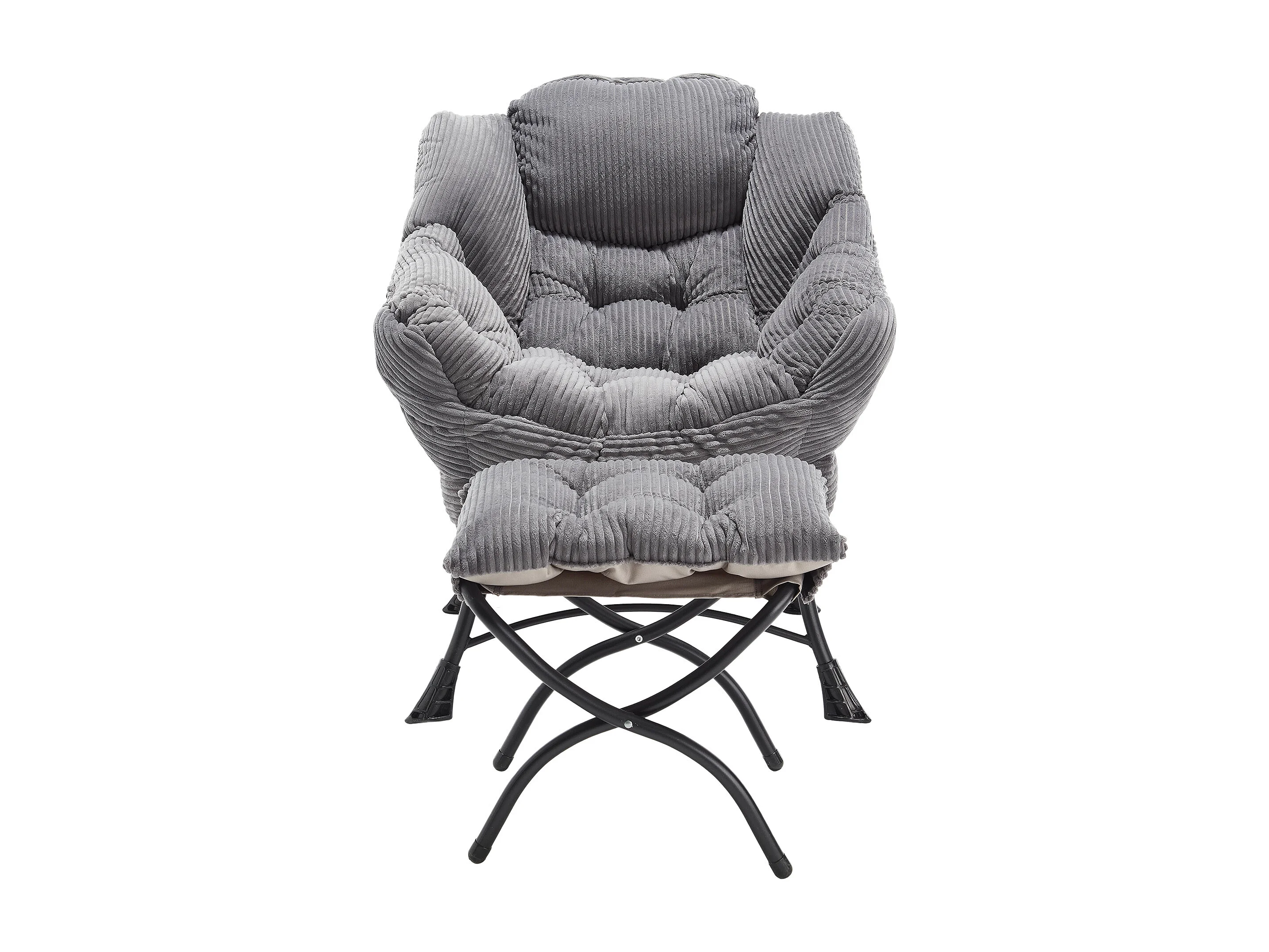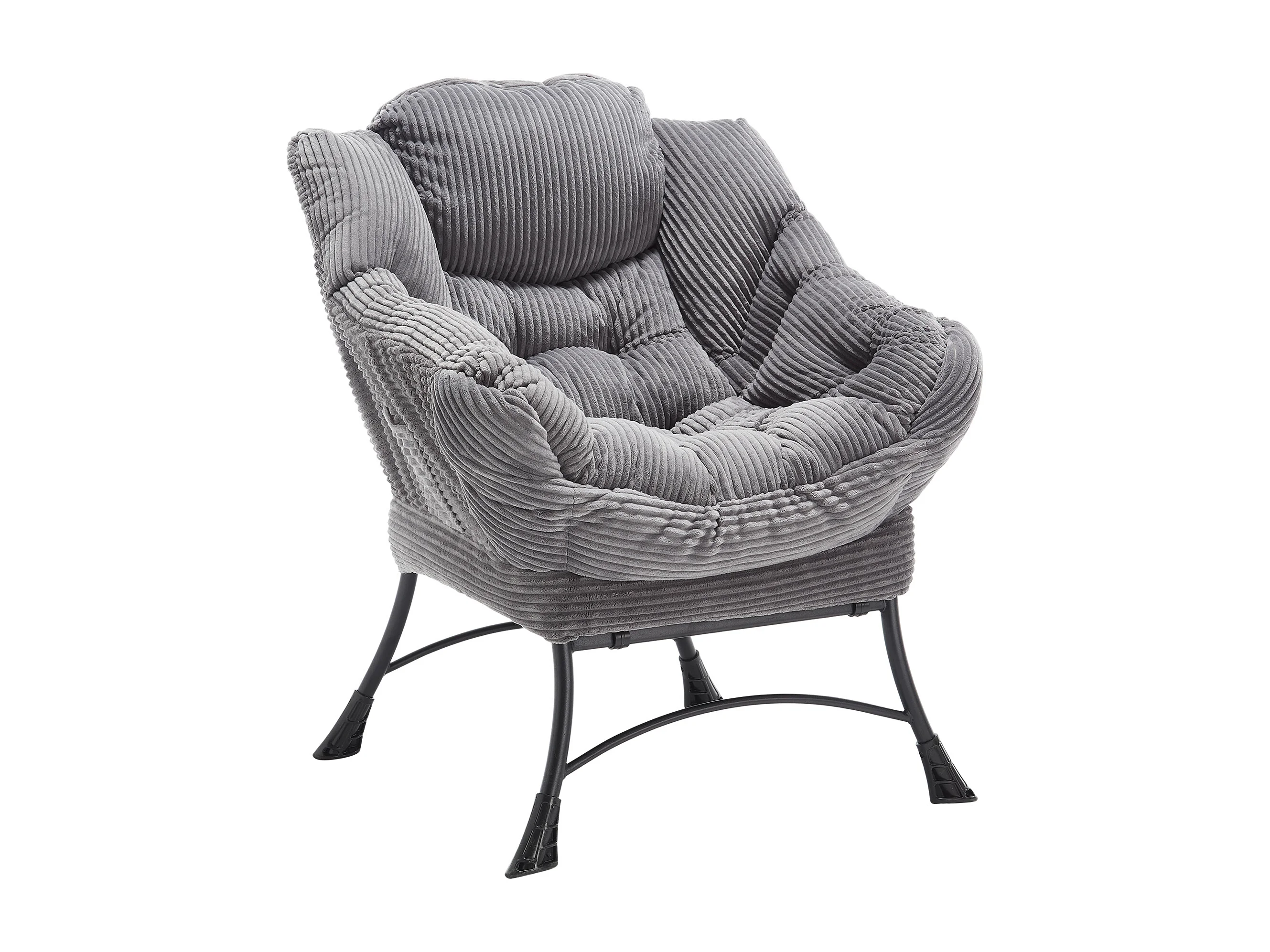 Fauteuil de détente avec repose-pieds, poche latérale, cadre en acier, gris