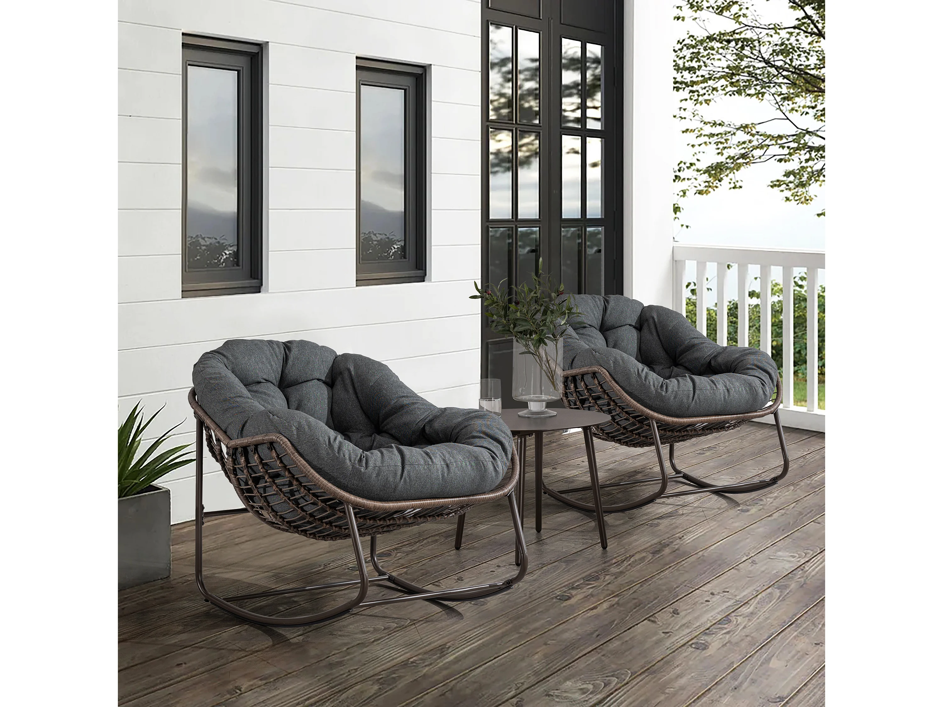 Fauteuil à bascule 94.5x111x80 cm avec capitonné Imperméable et résistant aux UV et antirouille en gris pour Balcon et salon