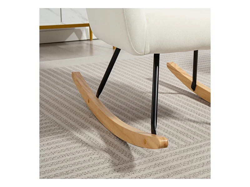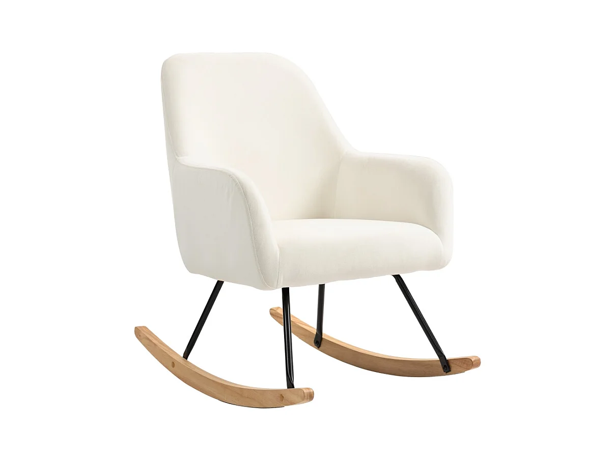 Fauteuil à bascule avec accoudoirs, design élégant, polyester velouté, blanc crème (85x68x89cm)