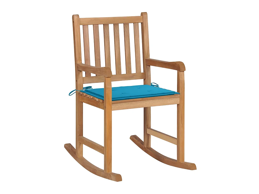 Fauteuil à bascule avec coussin bleu clair Bois de teck solide BE52912