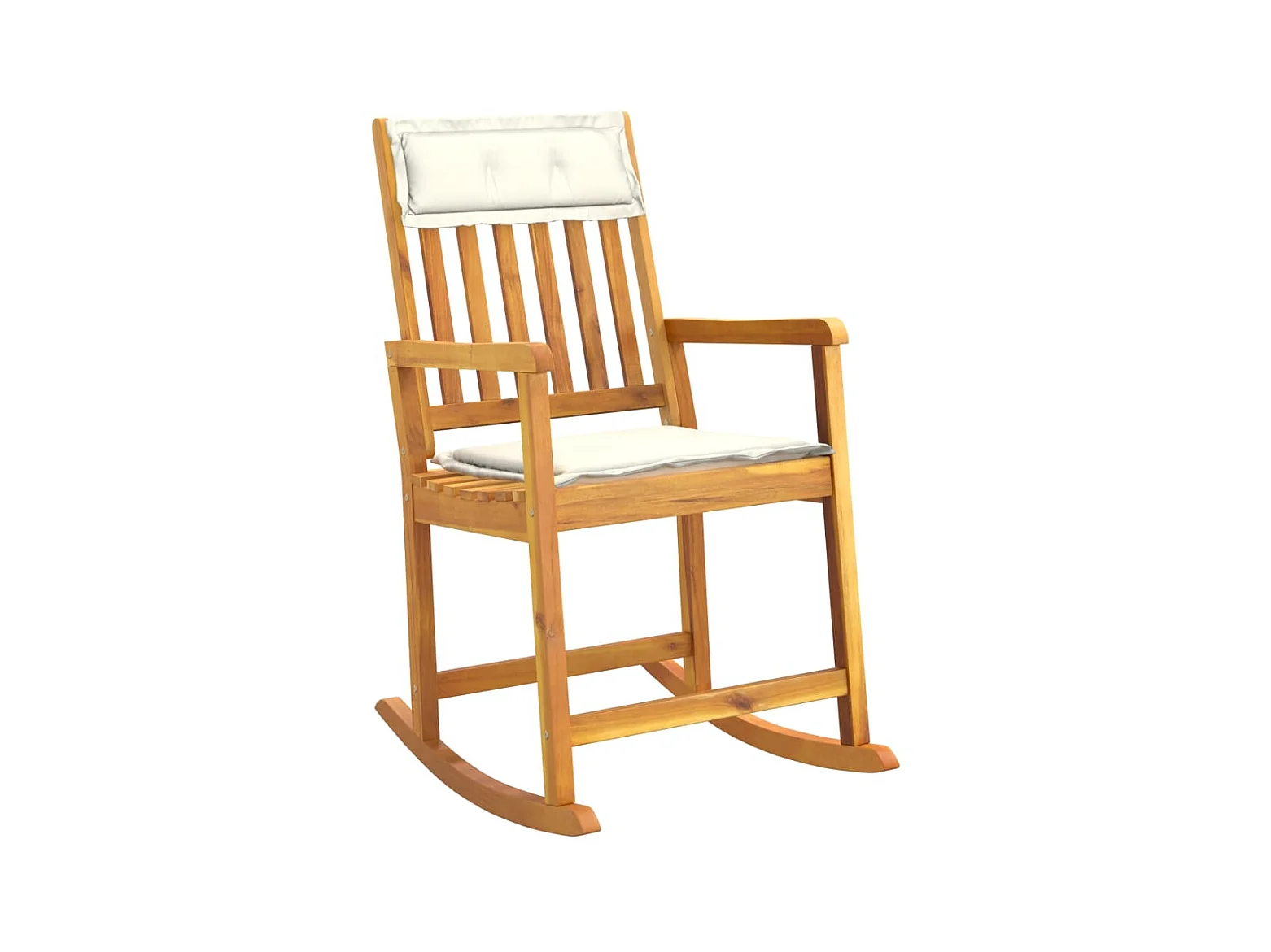 Fauteuil à bascule avec coussins bois massif d'acacia BE68026
