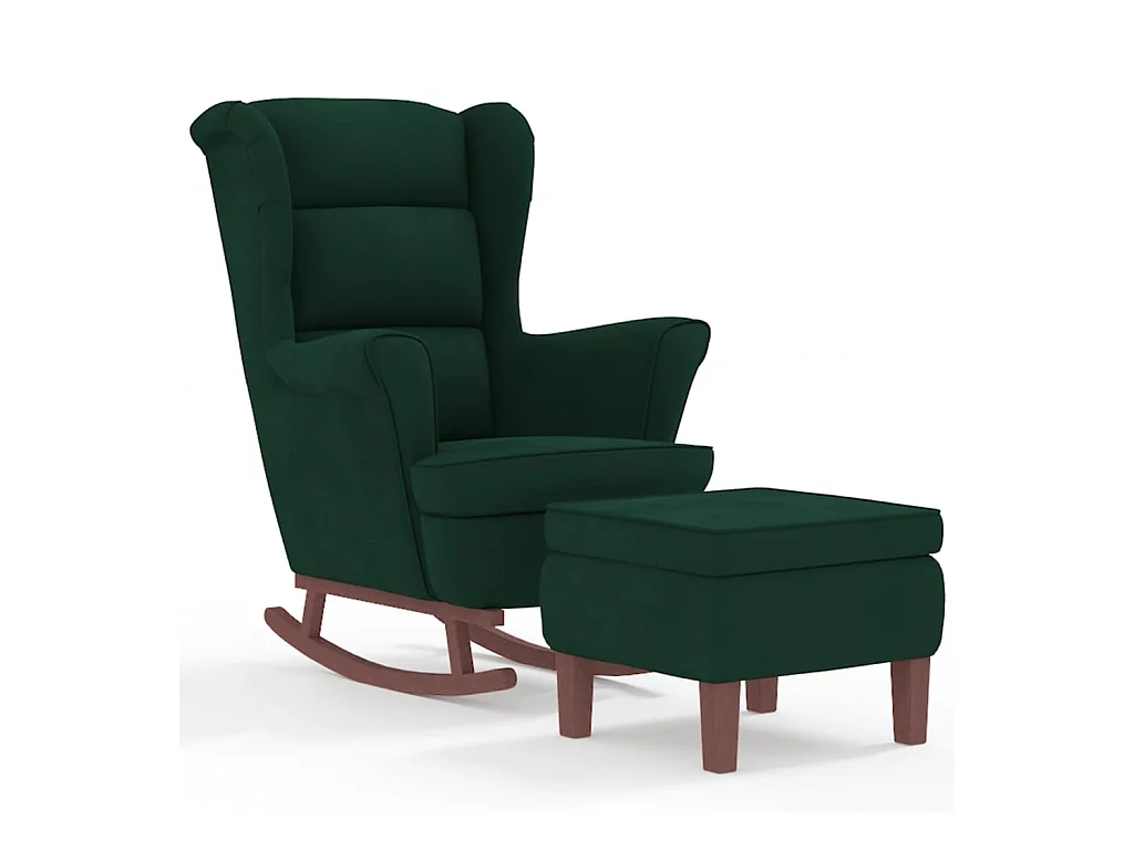 Fauteuil à bascule avec pieds en bois et tabouret Vert foncé OIU4556