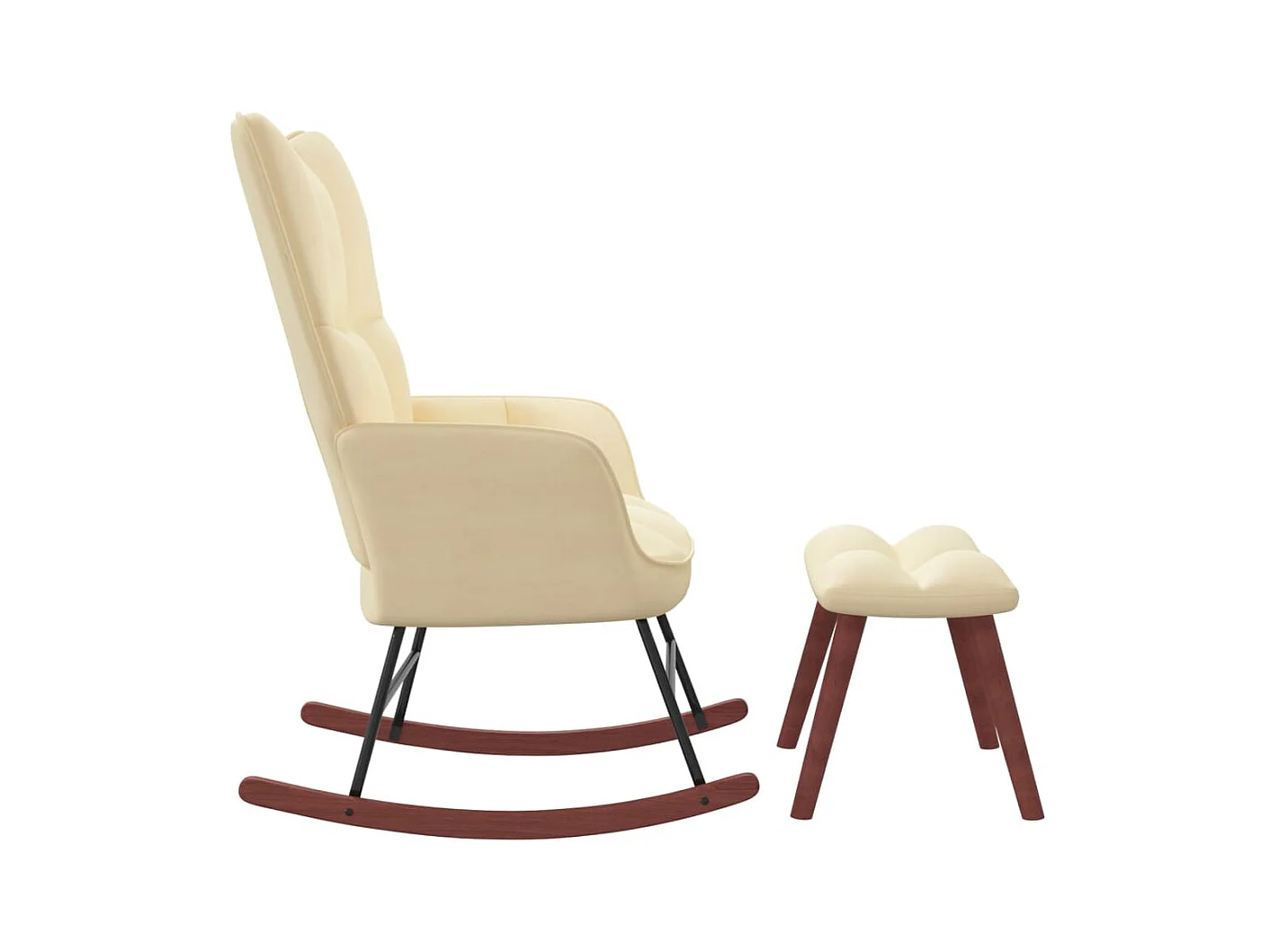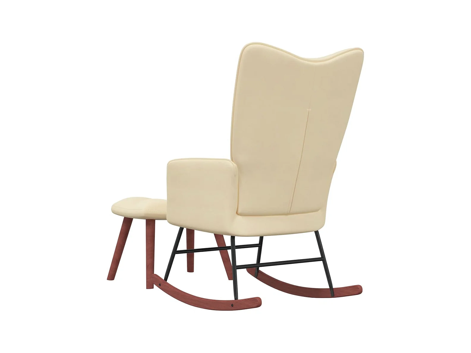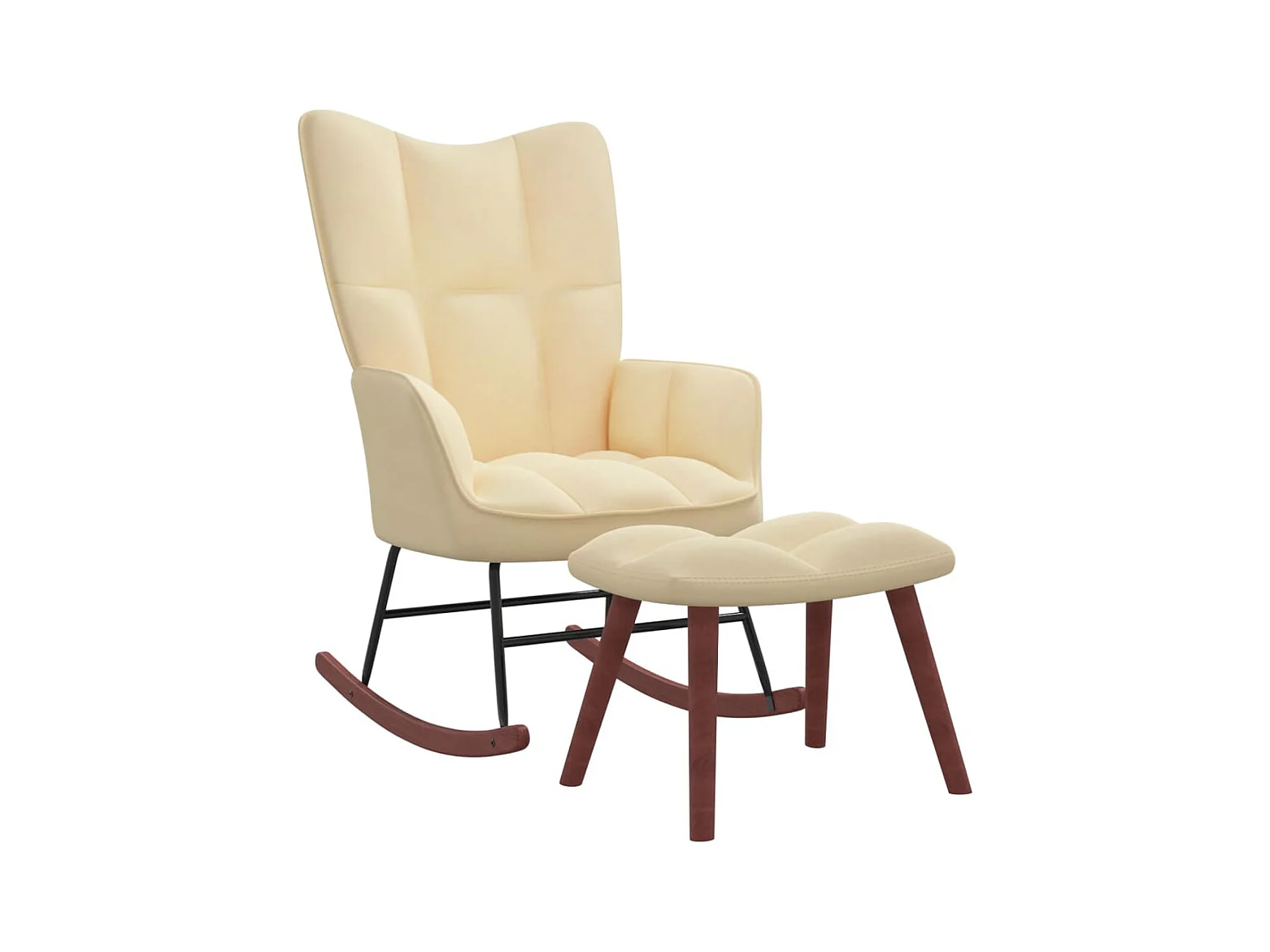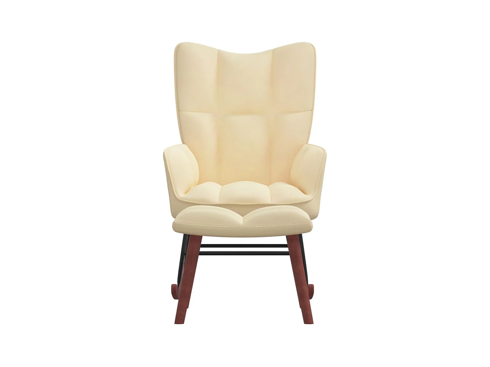 Fauteuil à bascule avec repose-pied Blanc crème Velours BE16529