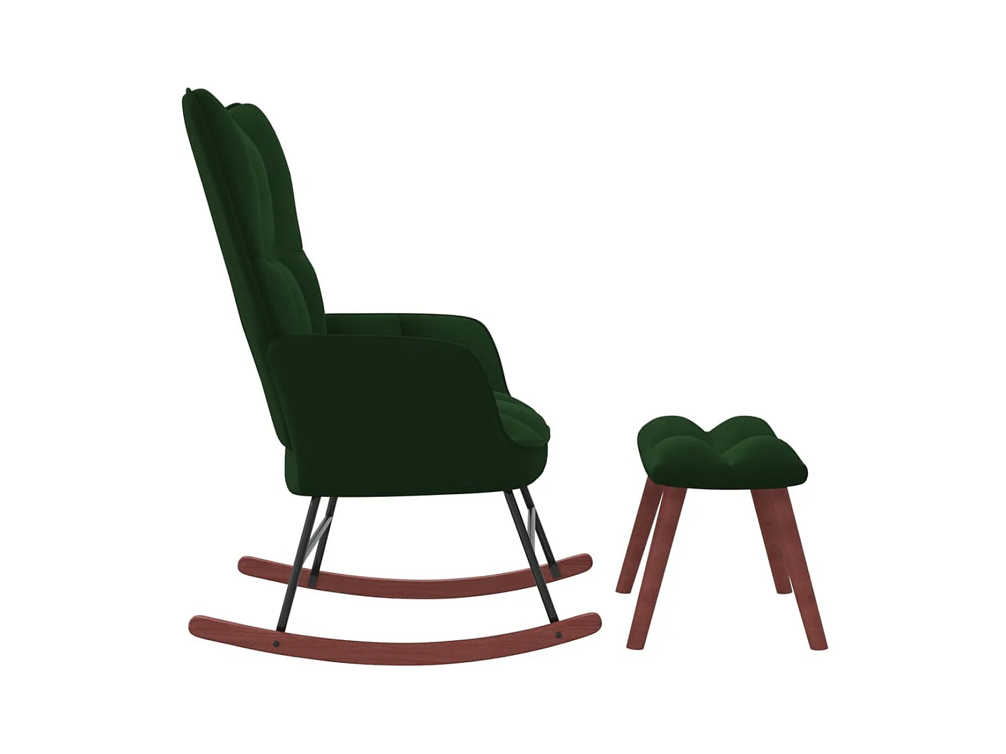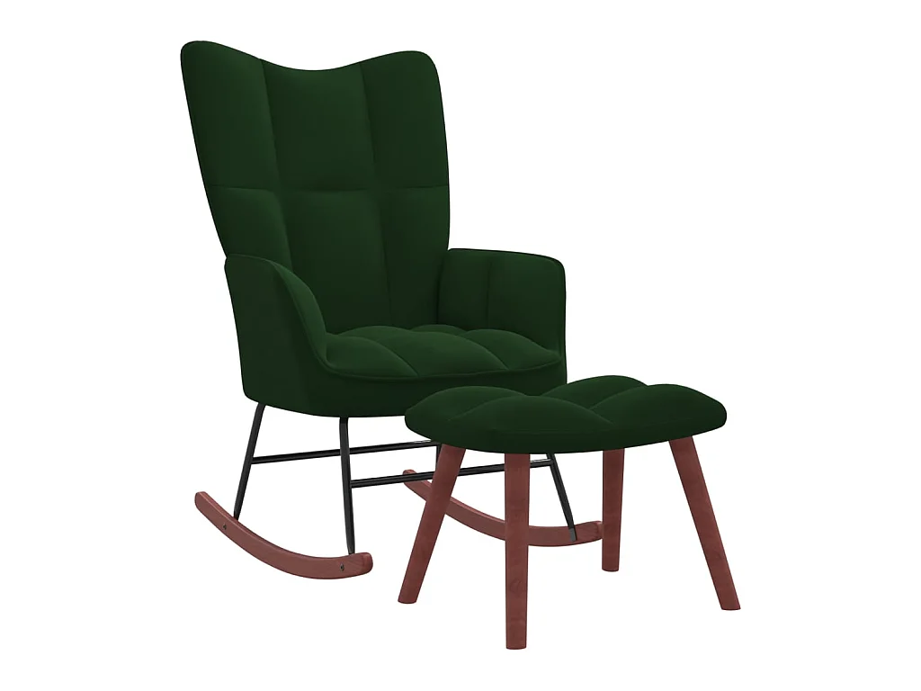 Fauteuil à bascule avec pieds en bois et tabouret Vert foncé OIU4556