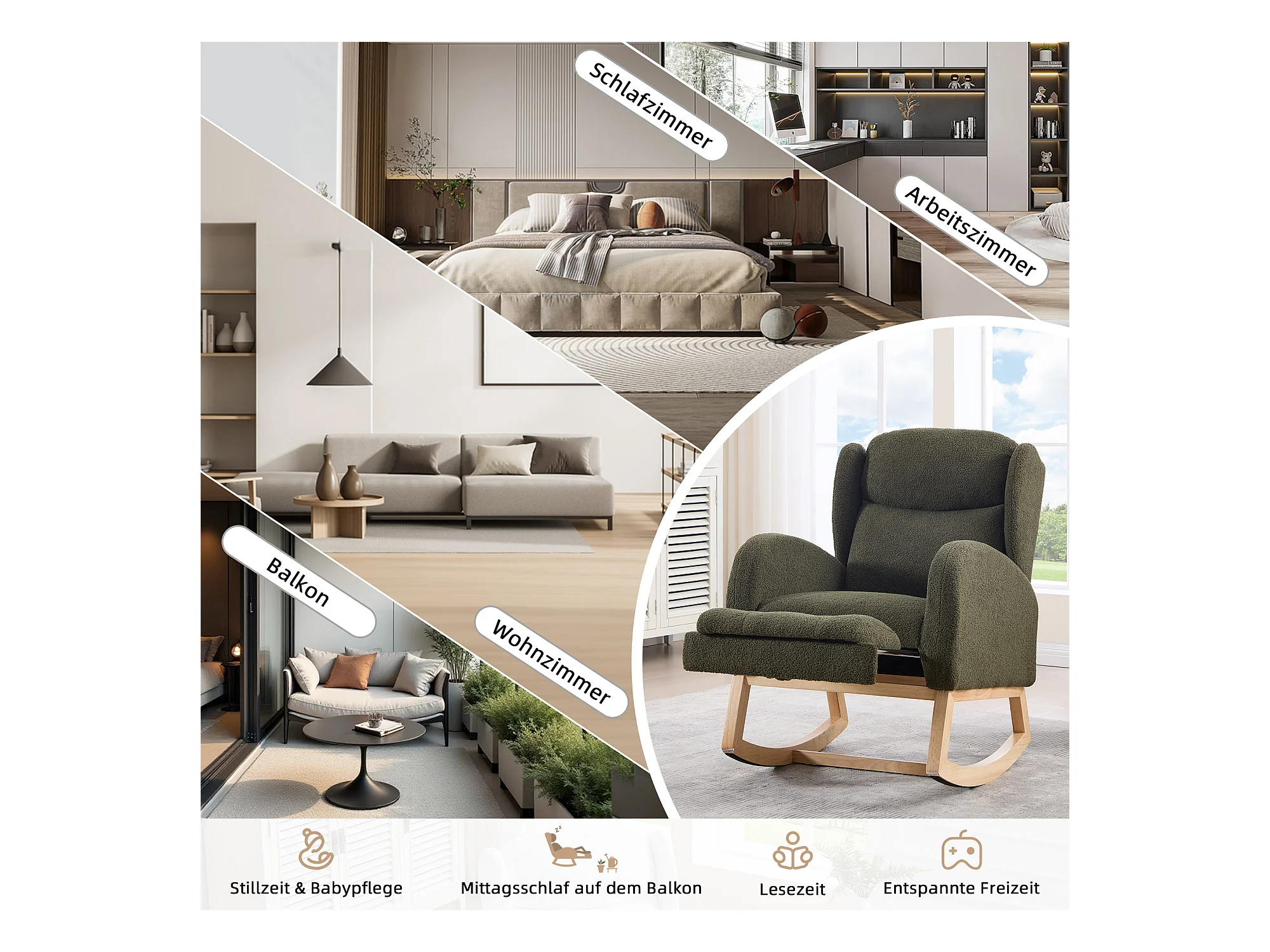 Fauteuil à bascule avec repose-pieds réglable, design ergonomique, tissu teddy, vert (122.5x70x104cm)
