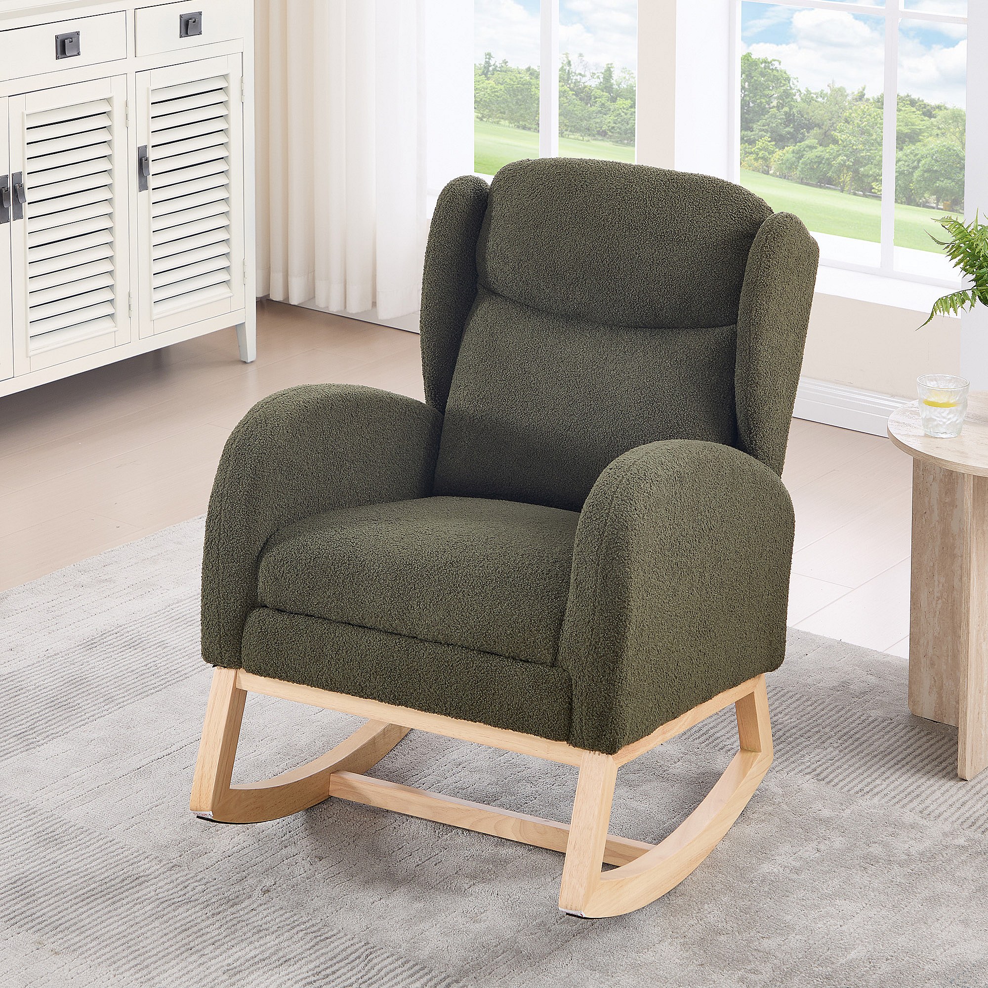 Fauteuil à bascule avec repose-pieds réglable et poches - tissu peluche vert