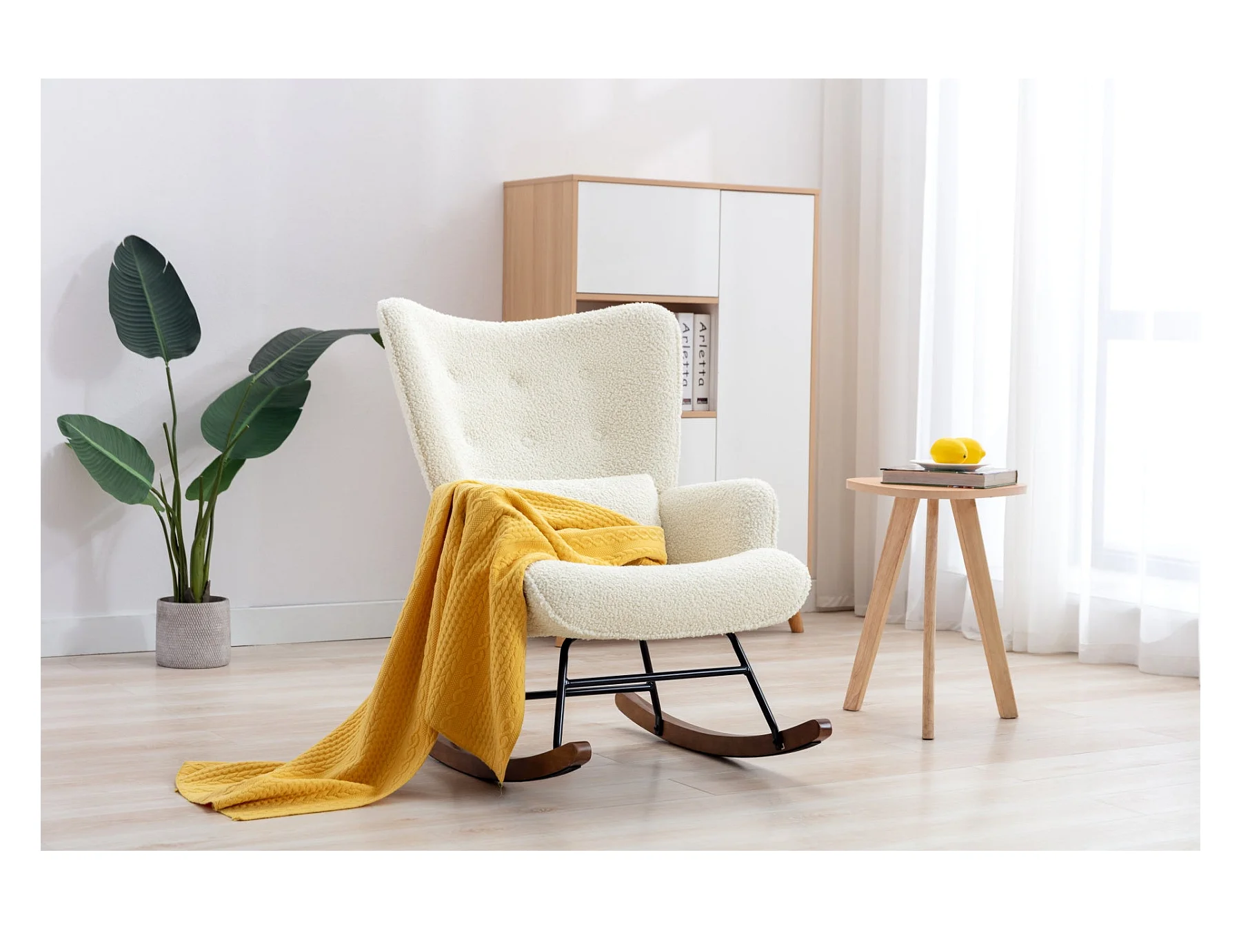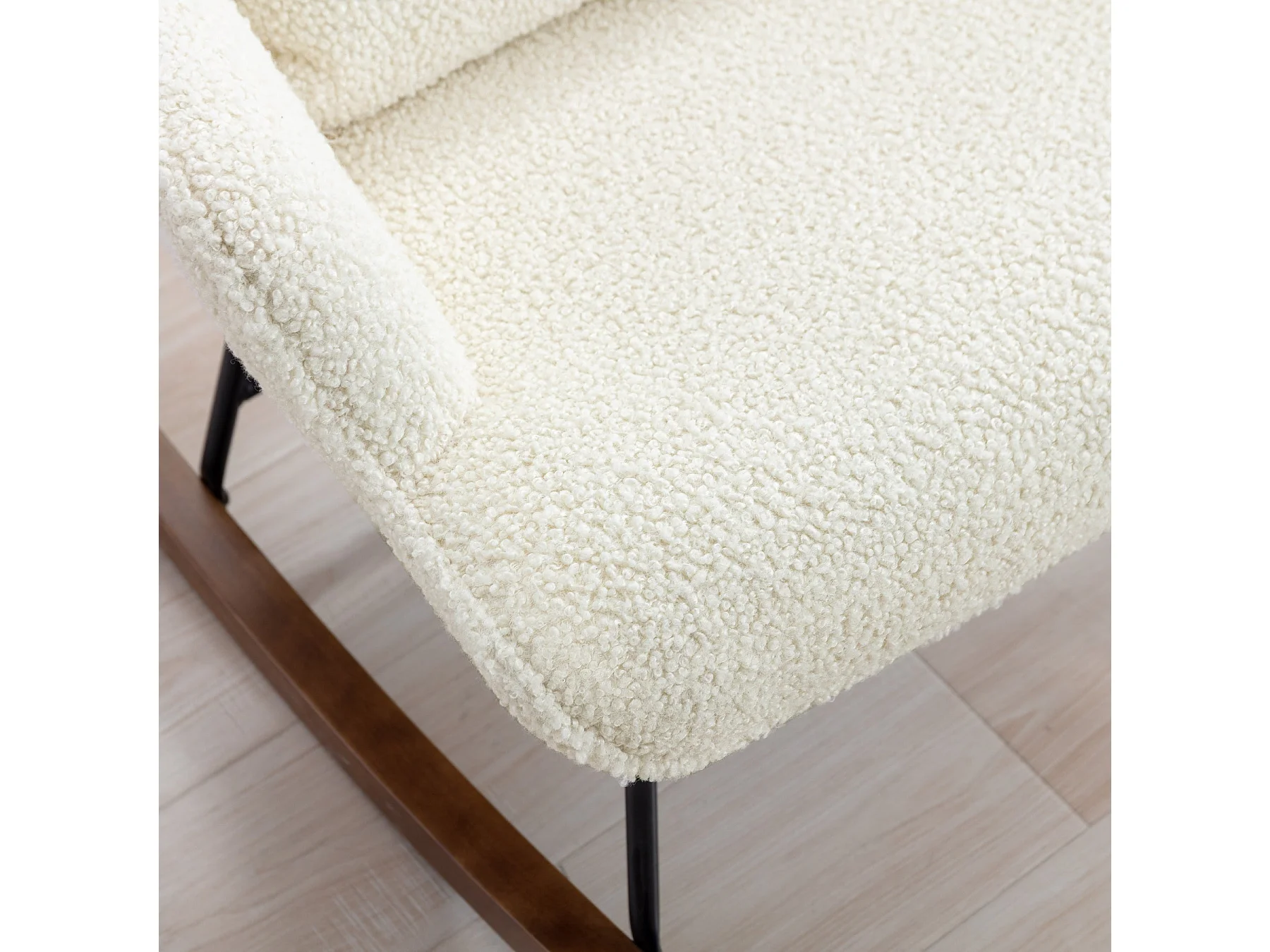Fauteuil à Bascule en Laine d'agneau Fauteuil en Laine Moderne, Chaise à Bascule Confortable avec Pieds en Bois Massif Beige