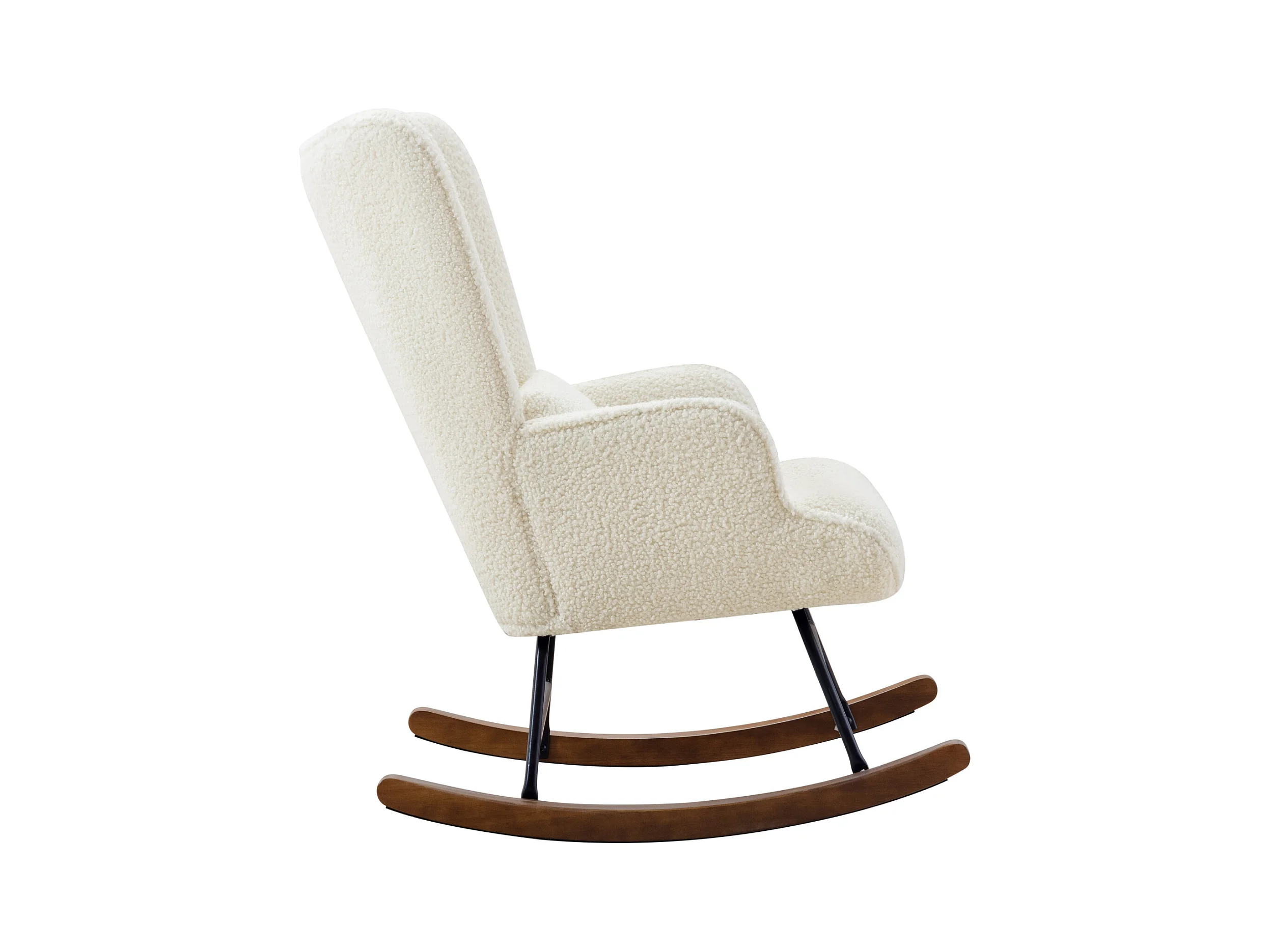 Fauteuil à Bascule Chaise Berçante Allaitement Bébé en Tissu Bouclette Rocking Chair Style Scandinave en Bois d'Hévéa, Beige
