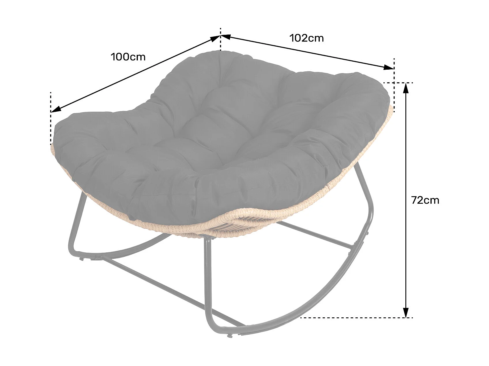 Fauteuil à bascule en rotin synthétique avec coussin noir CINTA - HAPPY GARDEN