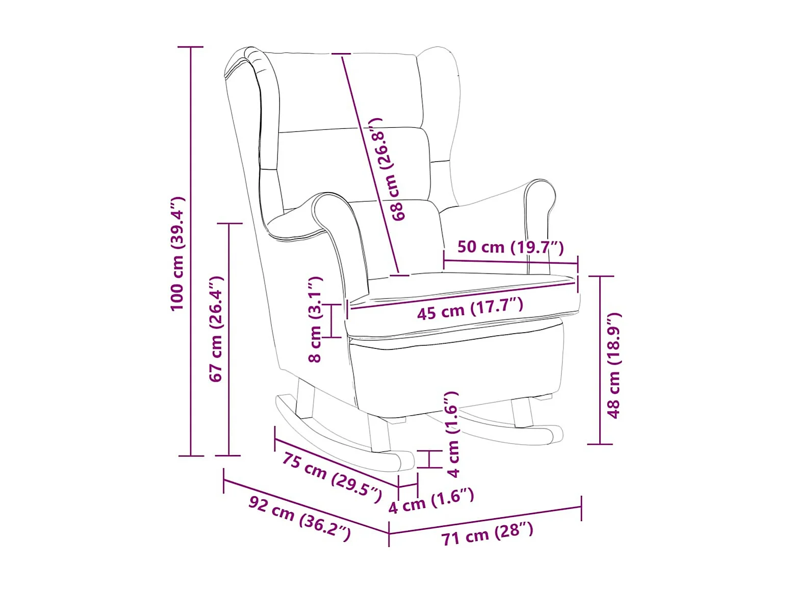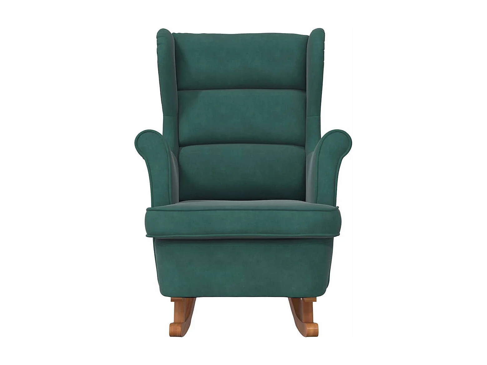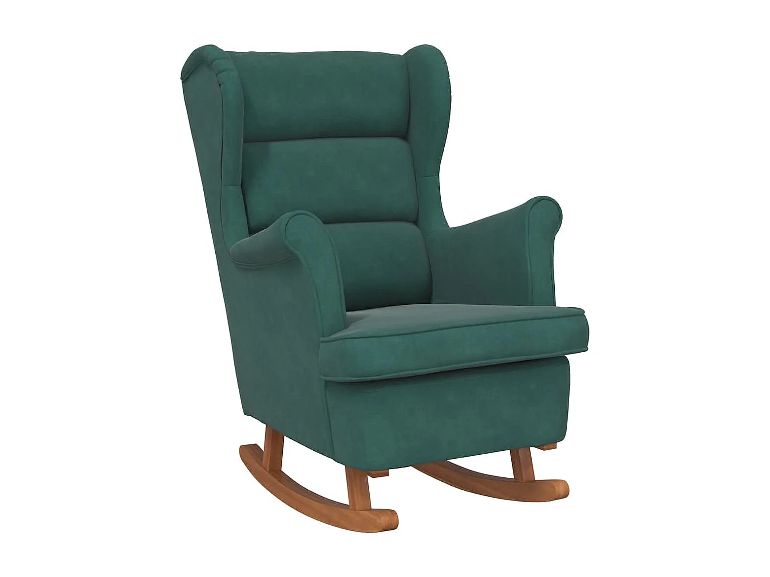 Fauteuil à bascule à oreilles en velours vert foncé bois massif