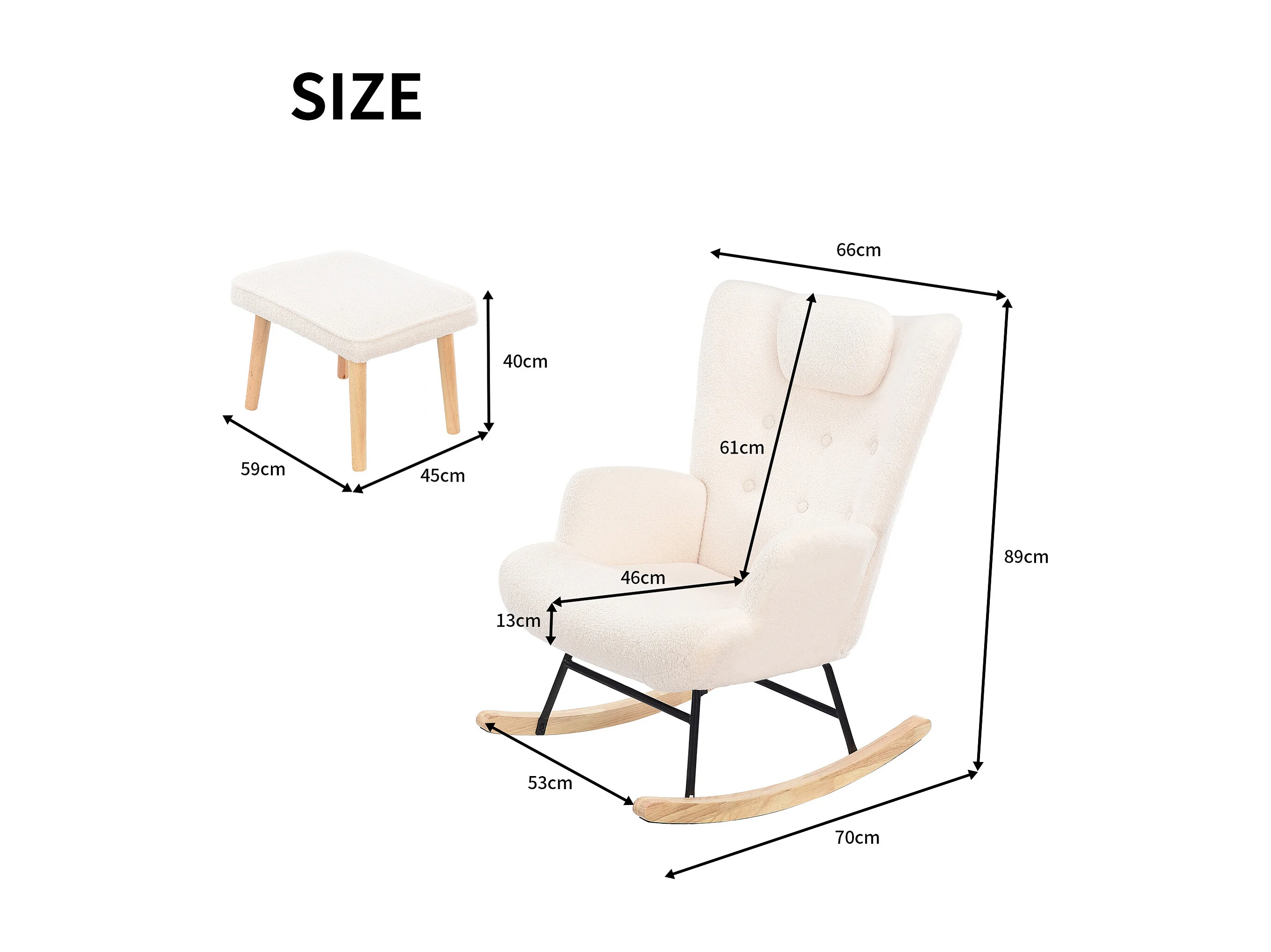 Fauteuil à bascule, fauteuil à bascule en peluche douce Teddy, chaise longue de salon avec appuie-tête et repose-pieds - supporte jusqu'à 150 kg
