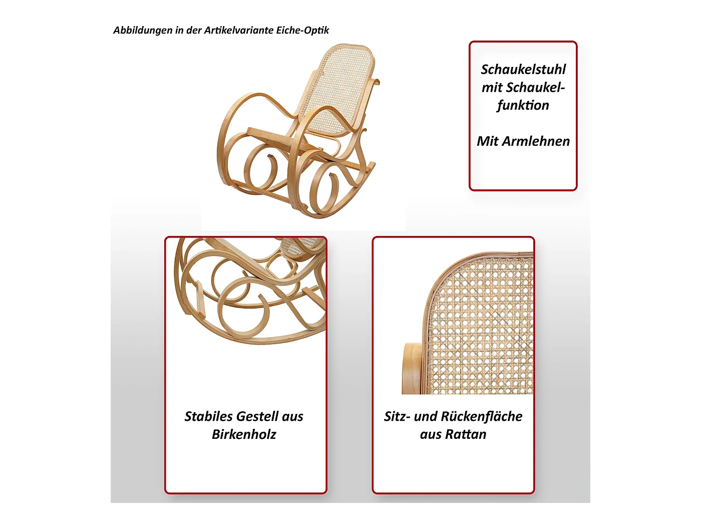 Fauteuil à bascule Gallarate Rattan, aspect chêne