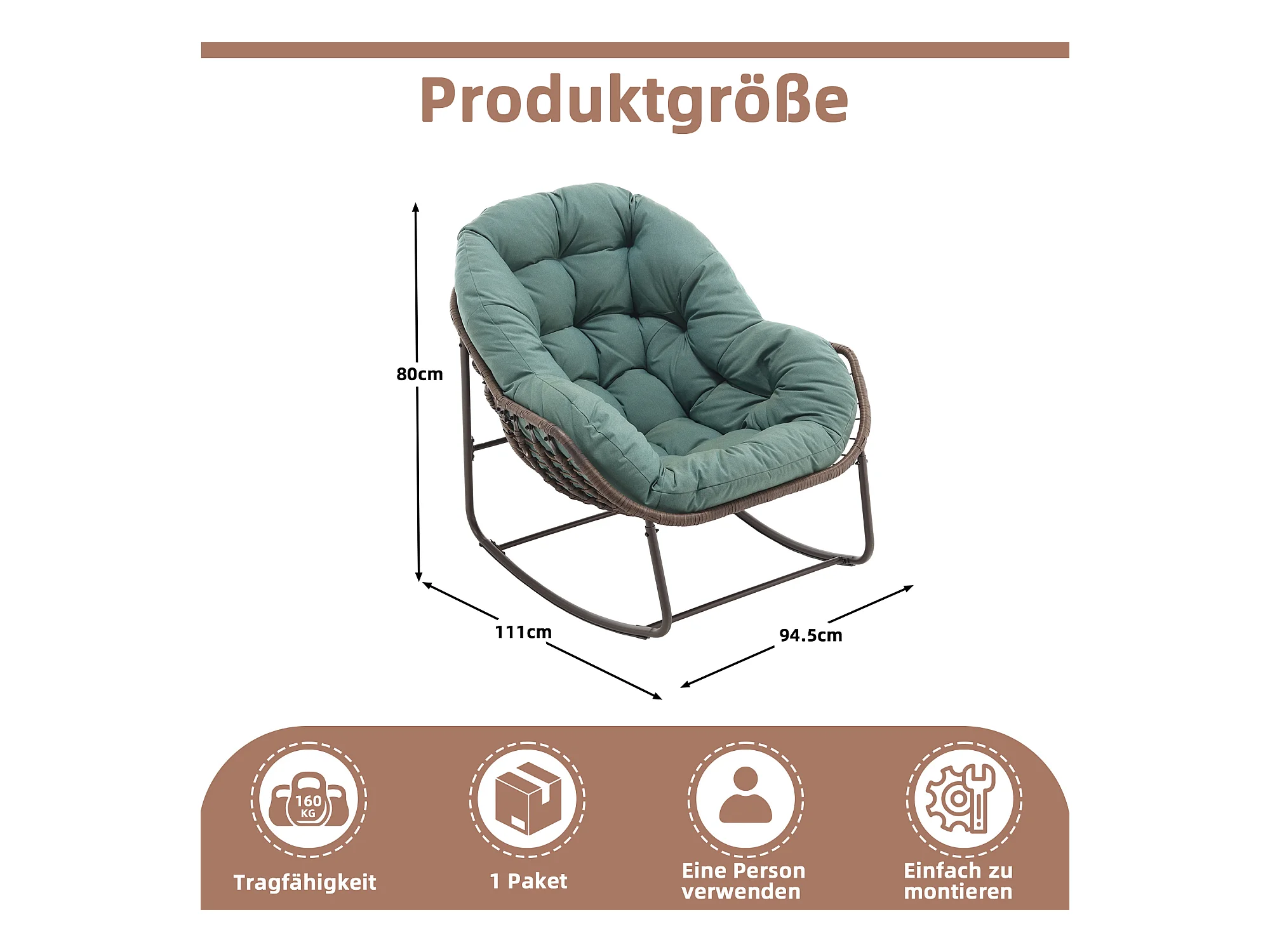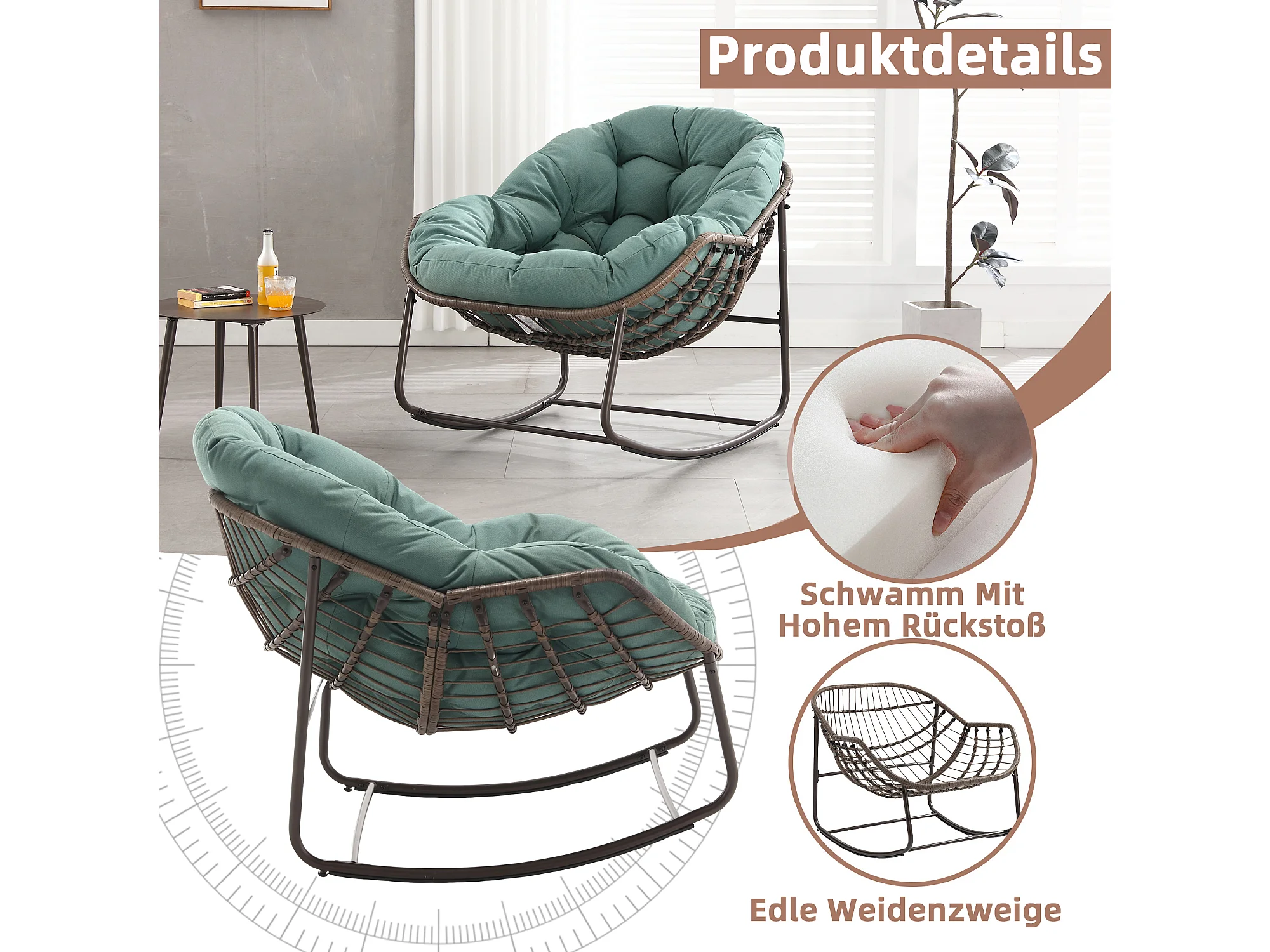Fauteuil à Bascule en Rotin Naturel - Forme Œuf et Coussin Vert - Confortable pour Salon, Véranda ou Chambre
