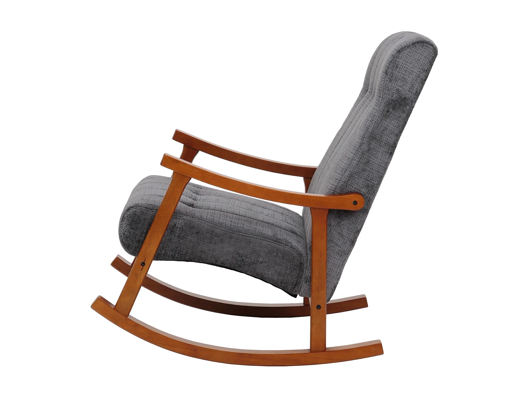 Fauteuil à bascule MCW-K10, gris foncé, structure aspect noyer