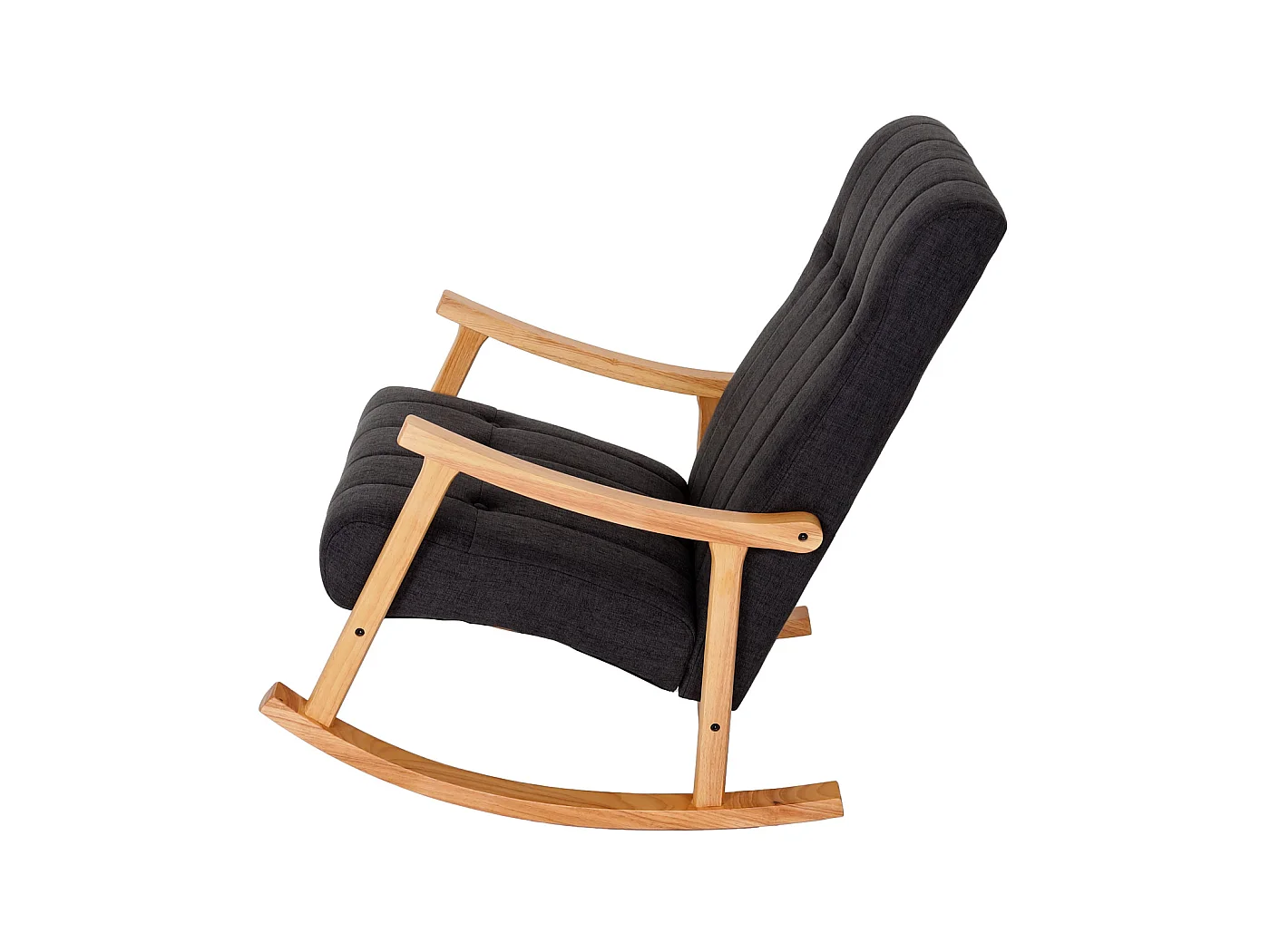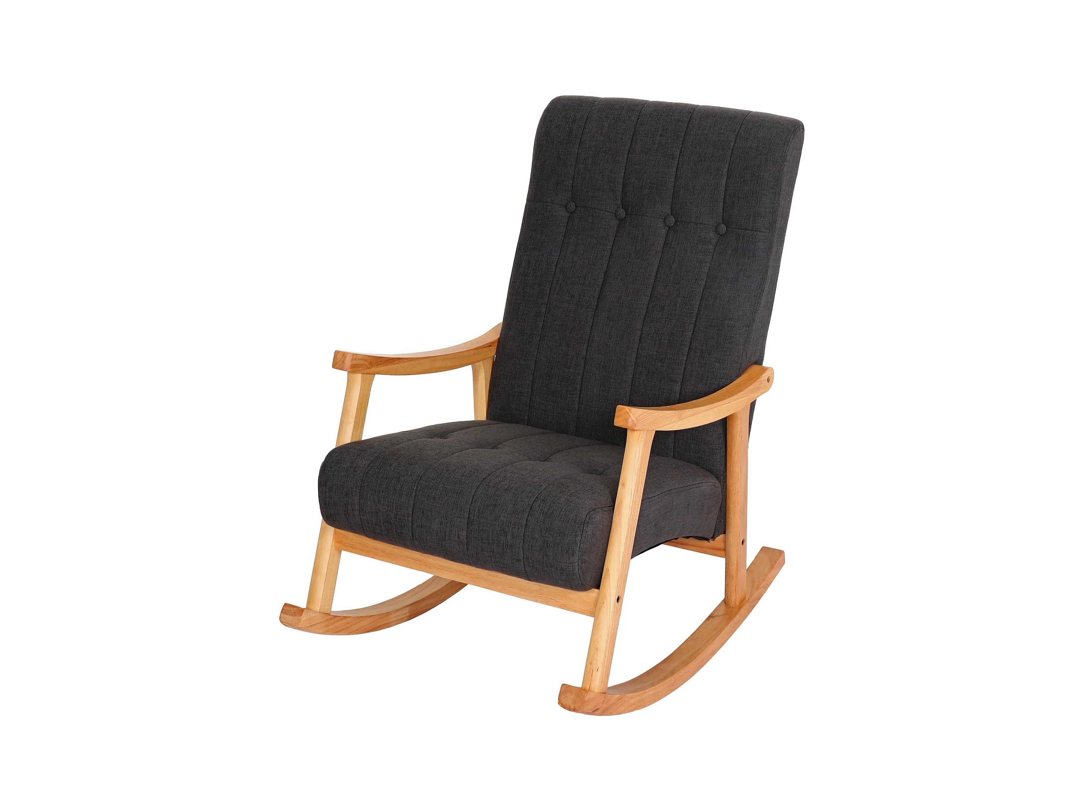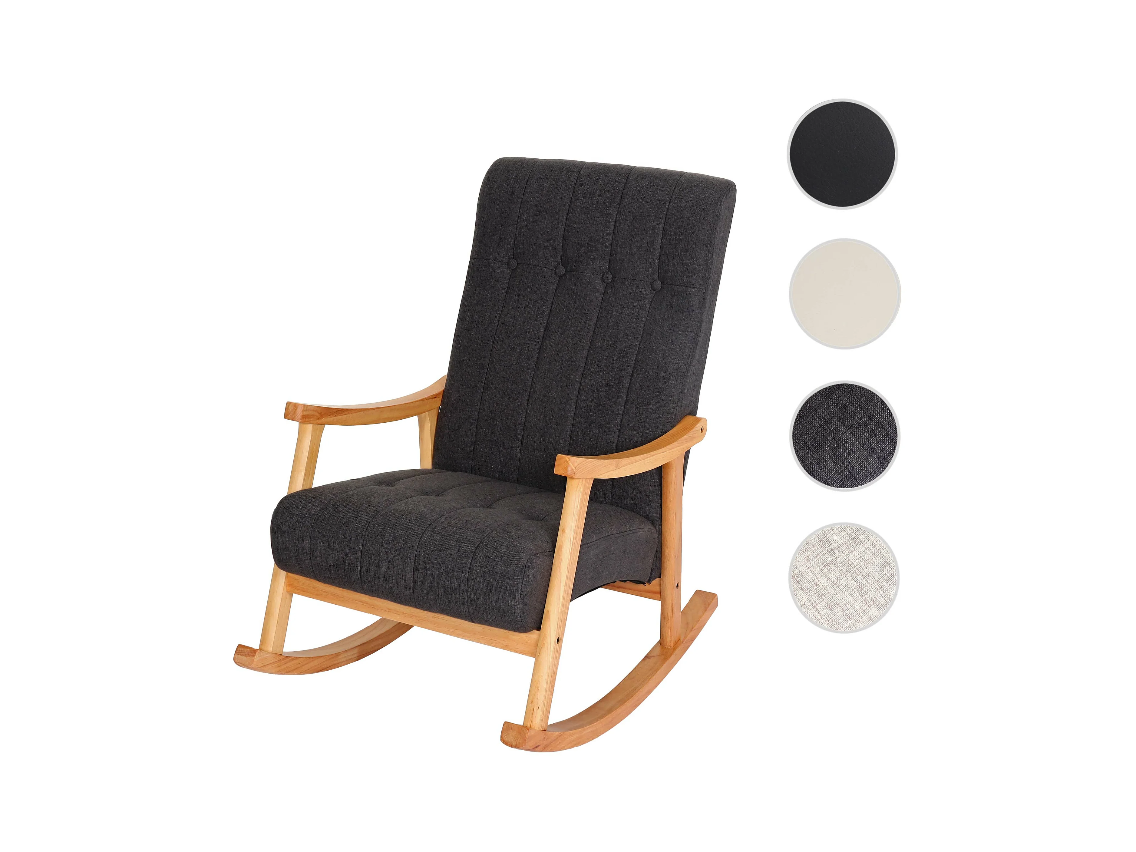 Fauteuil à bascule MCW-K10, Tissu/Textile gris foncé, piétement marron