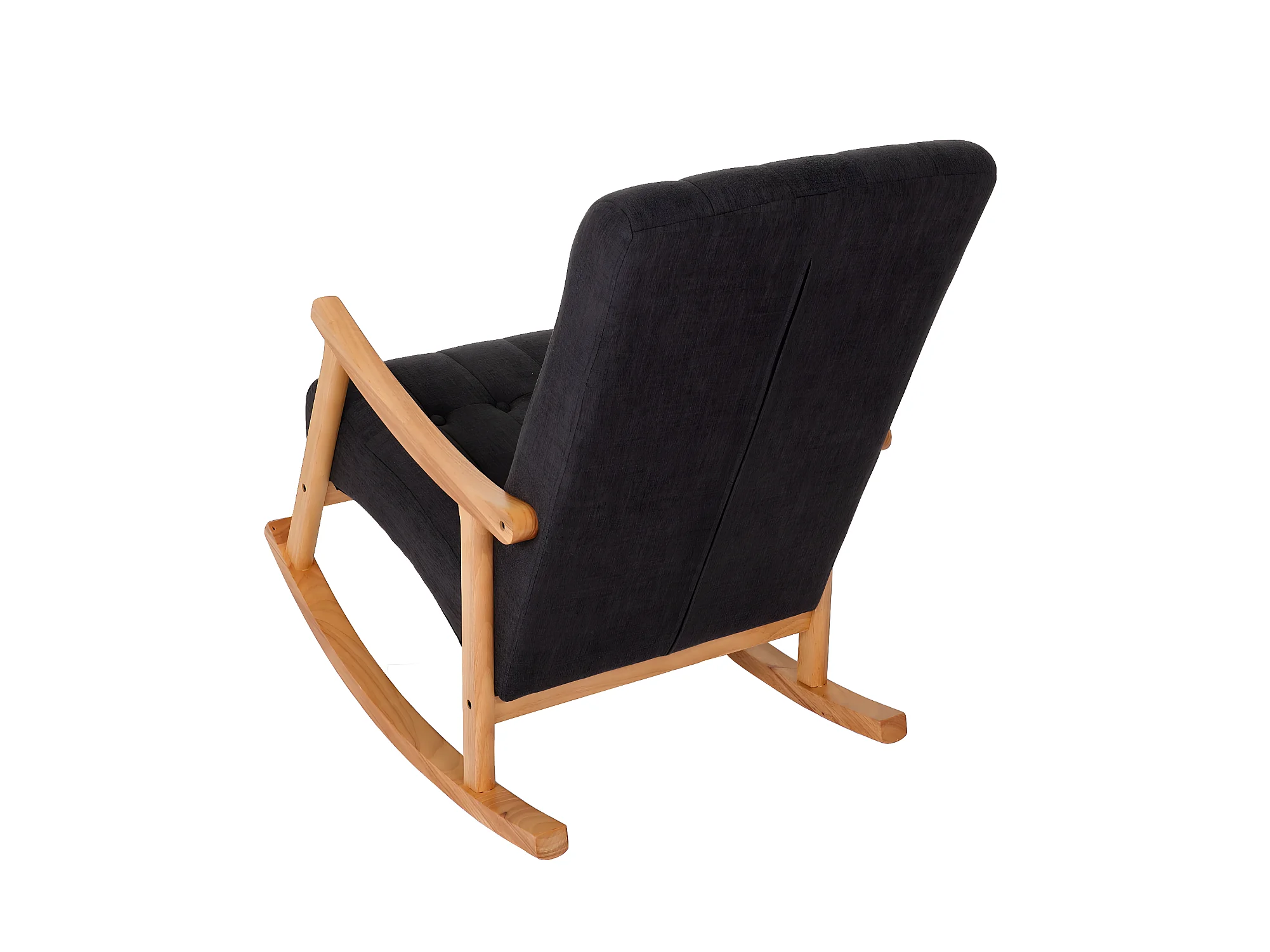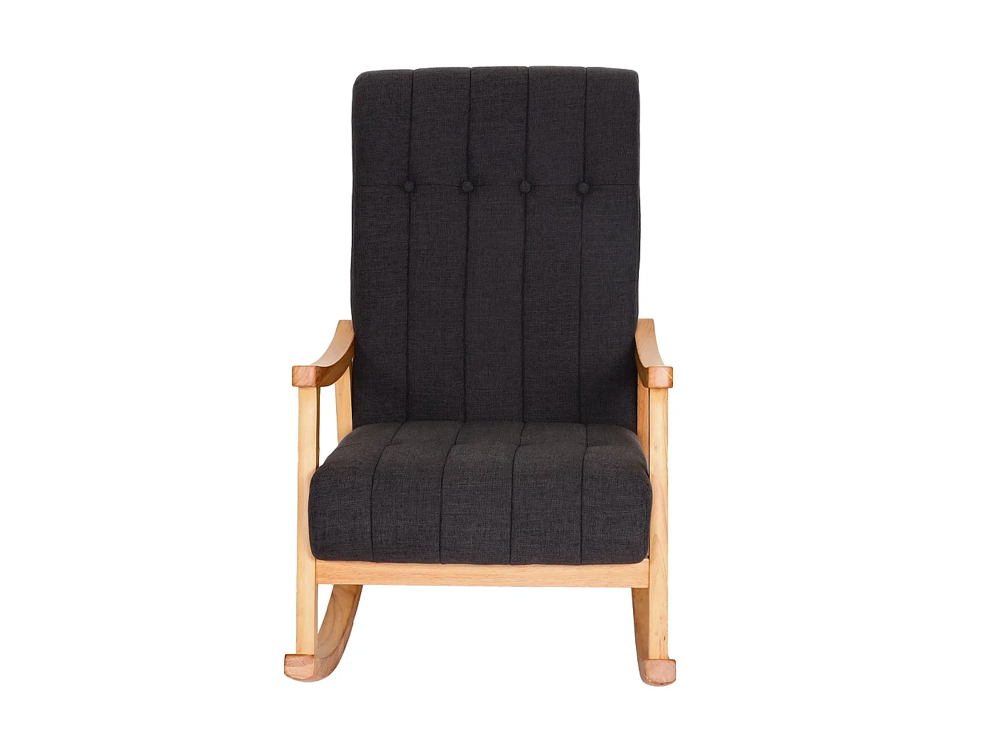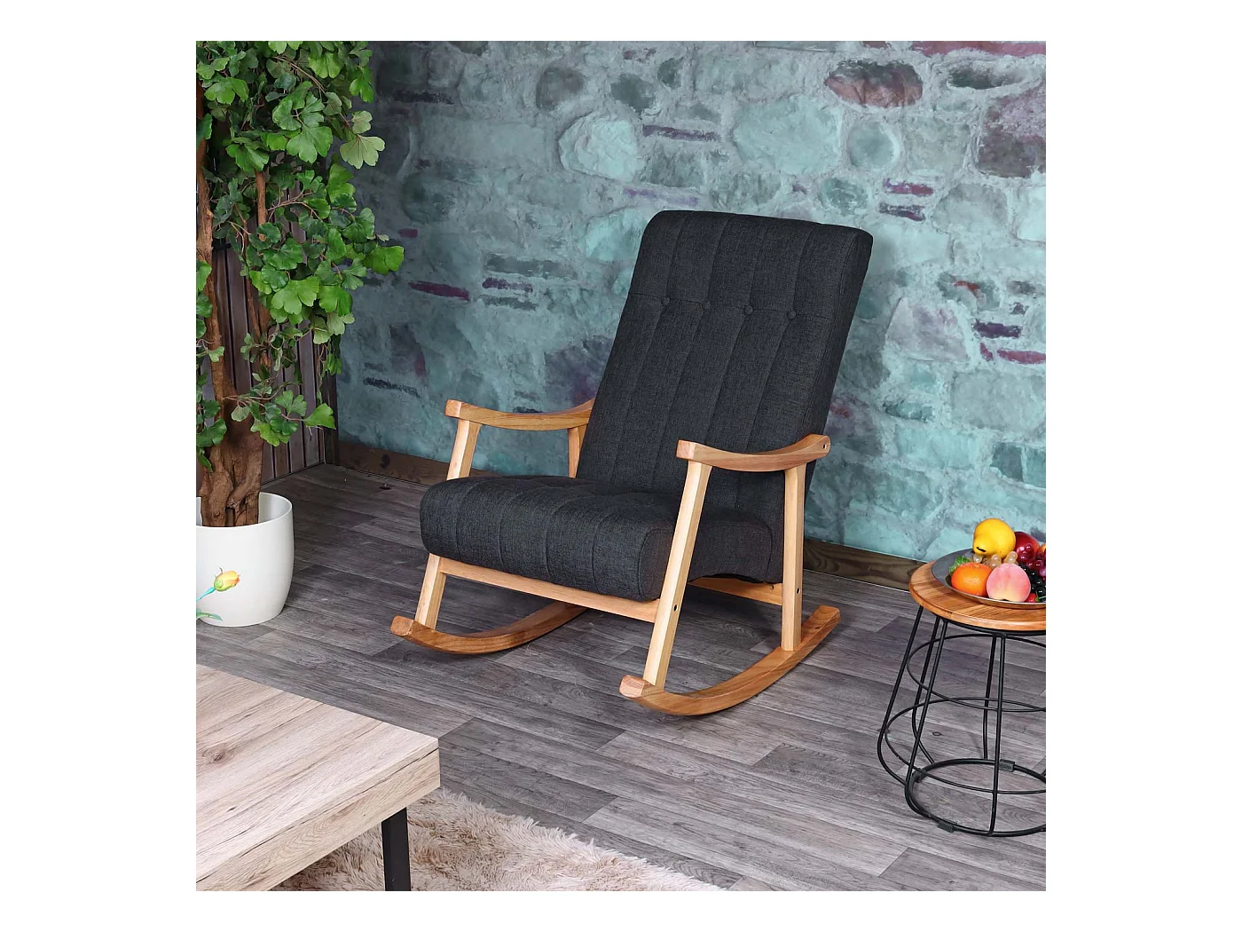 Fauteuil à bascule MCW-K10, Tissu/Textile gris foncé, piétement marron