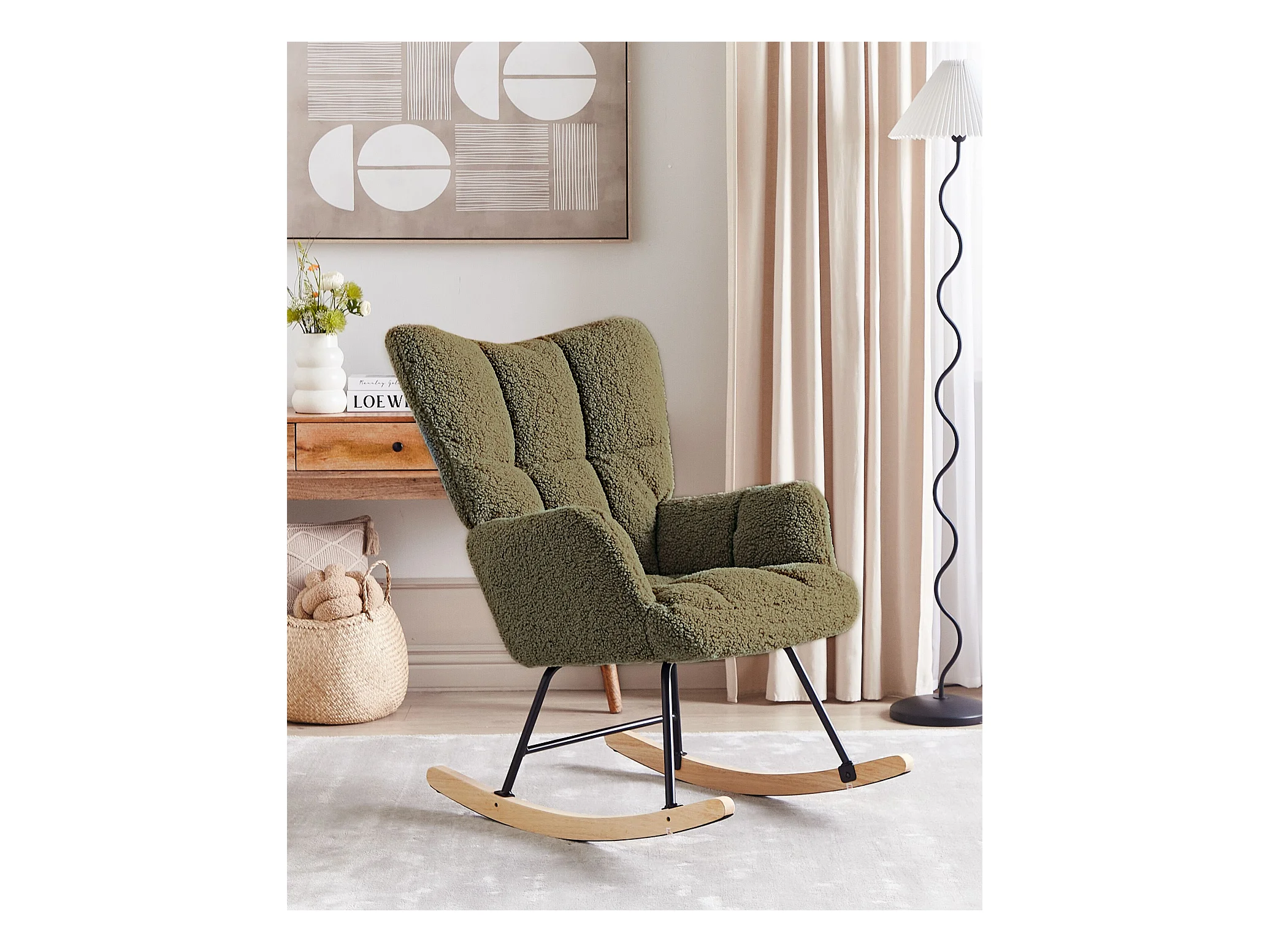 Fauteuil à bascule en tissu boucle vert kaki KAIRA - HAPPY GARDEN