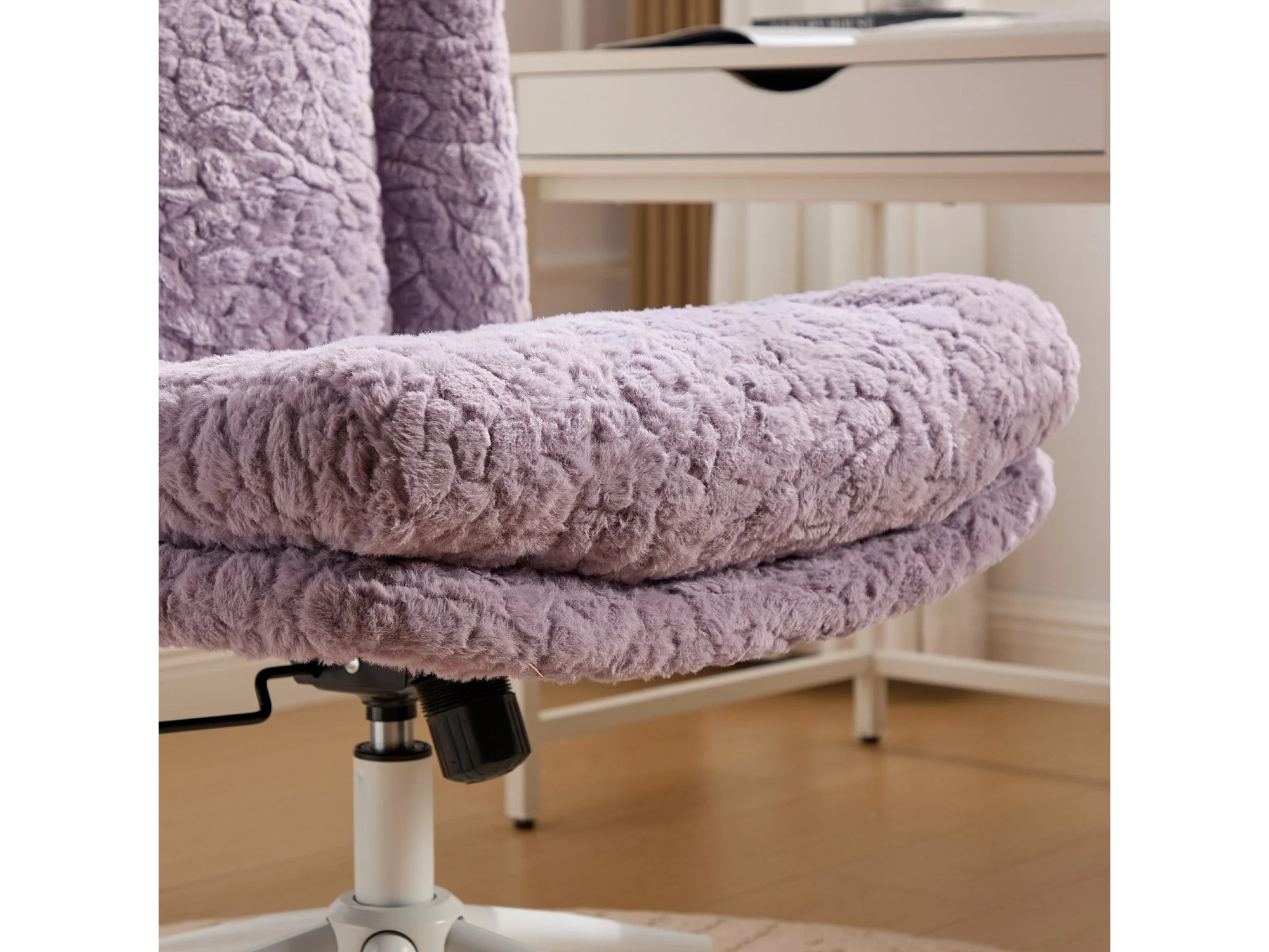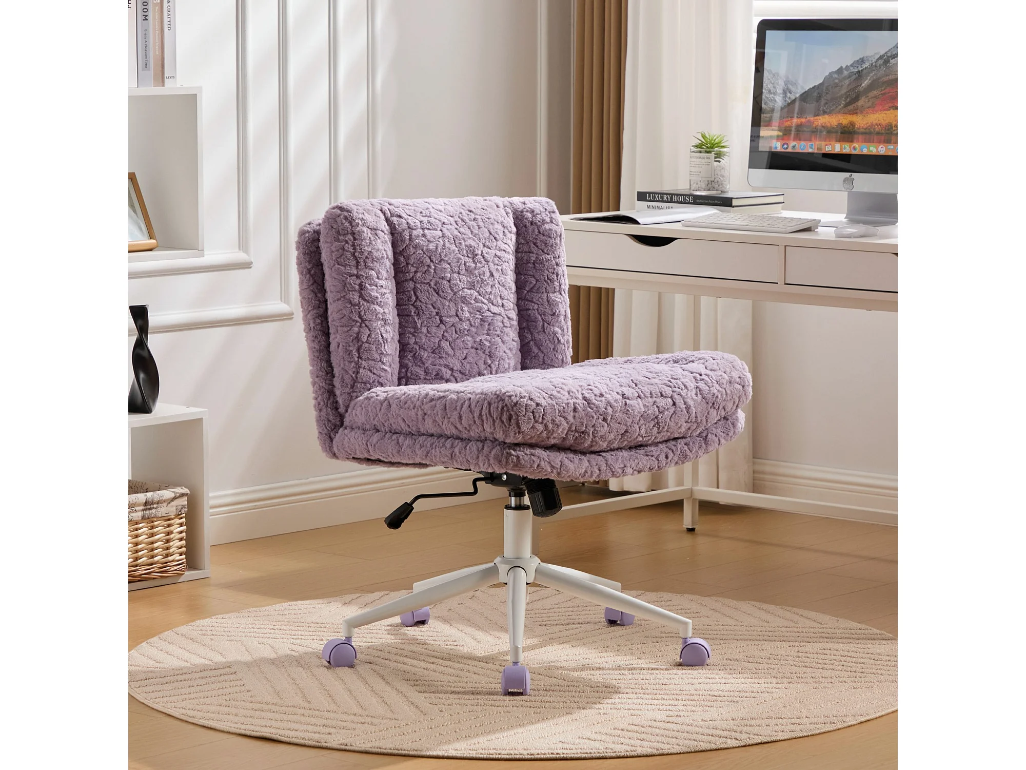 Chaise de bureau, hauteur réglable, assise 360°, fonction d’inclinaison, ergonomique, fausse fourrure, violet