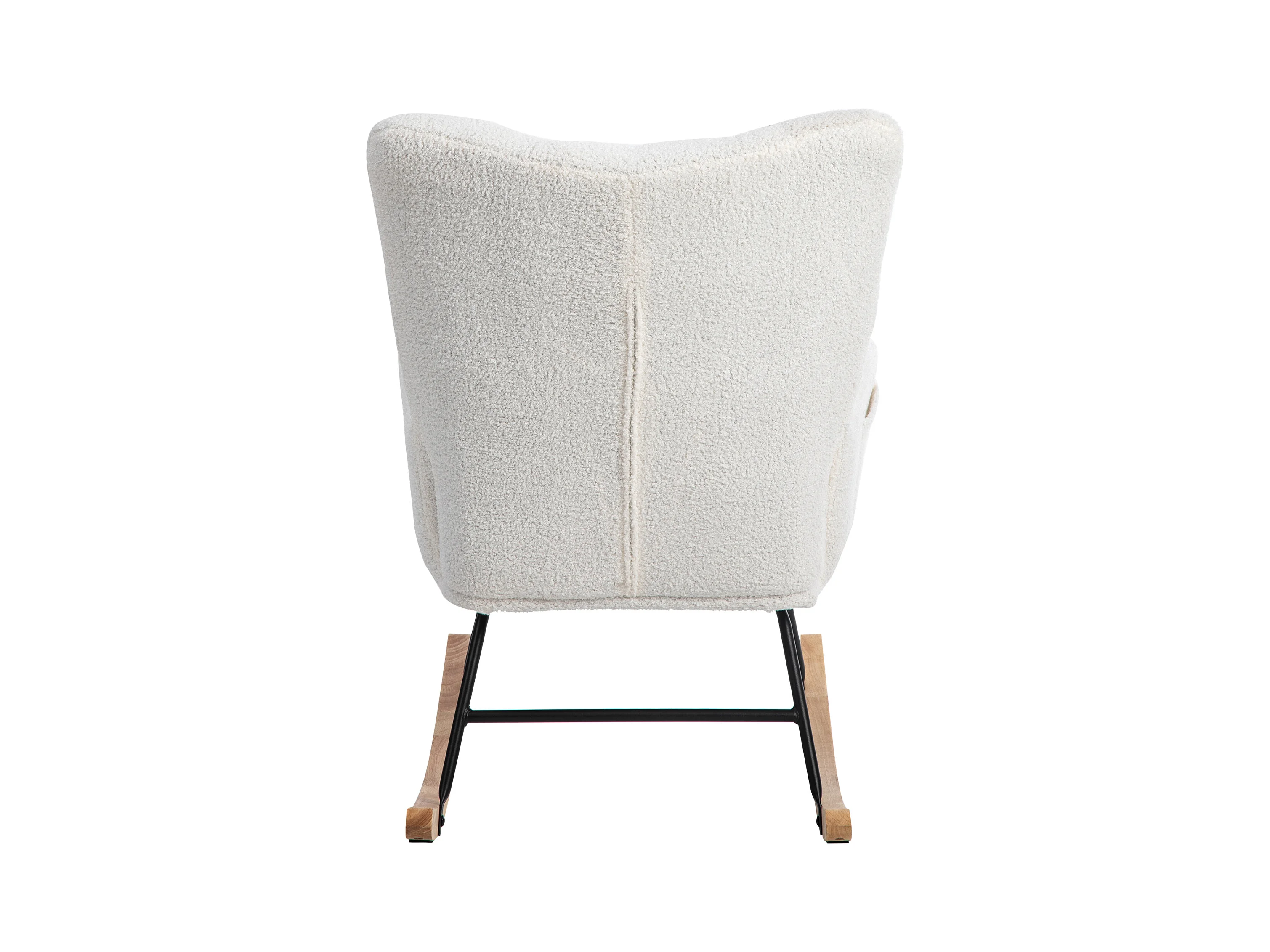 Fauteuil à bascule en velours Teddy Blanc crème, chaise à bascule avec accoudoirs