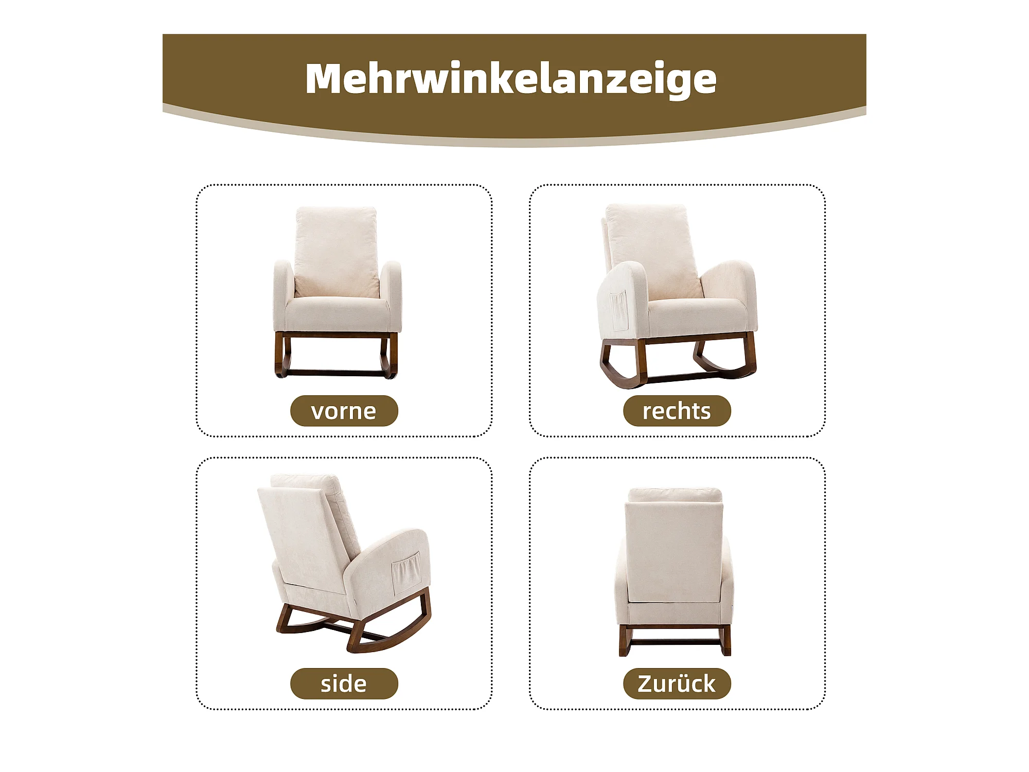 Fauteuil à bascule style Mid-Century, design moderne, tissu lin, beige, dossier haut rembourré (94x69x101 cm)