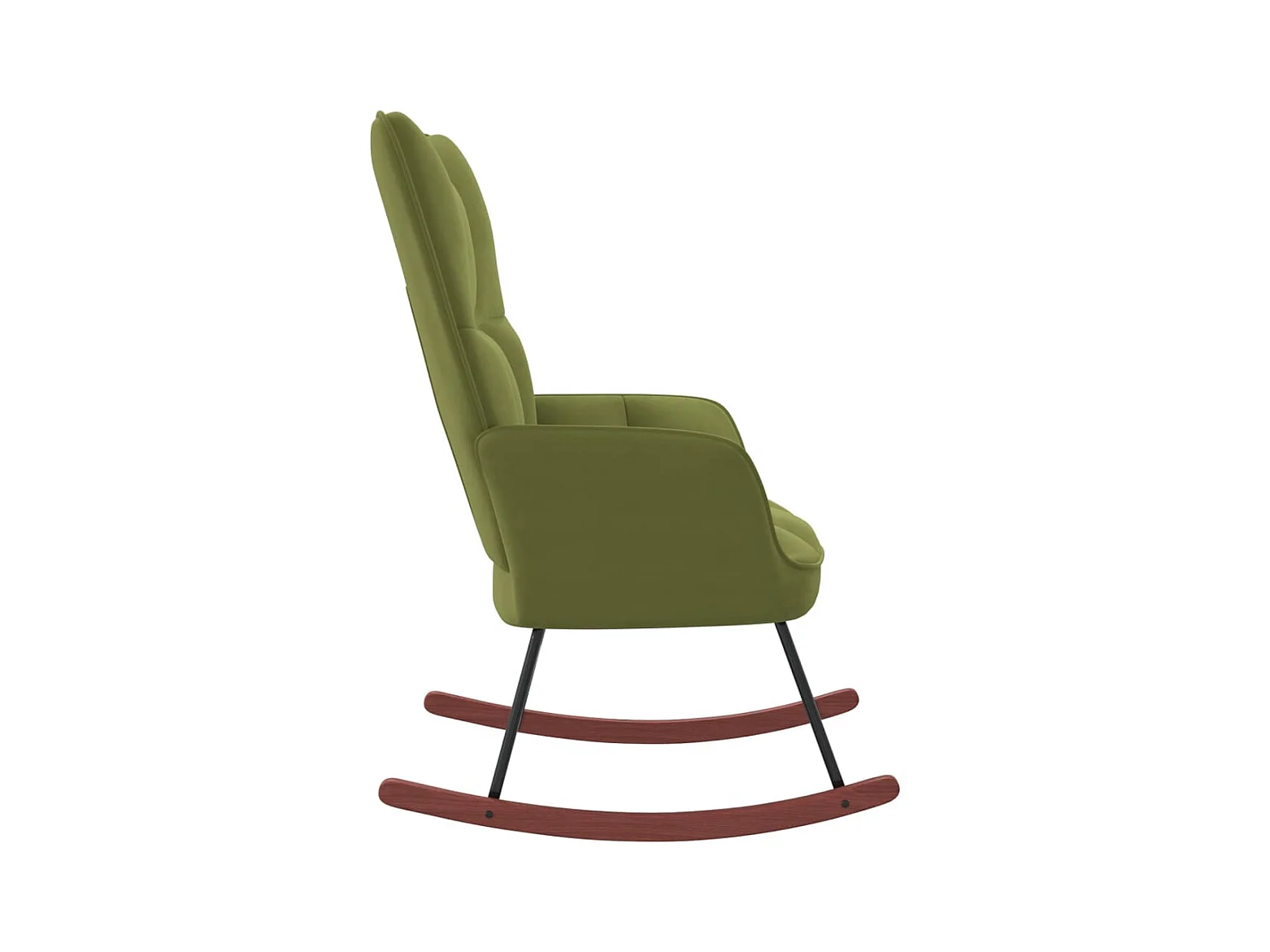 Fauteuil à bascule avec repose-pieds, tissu velours, pieds en bois, vert (66x96x101 cm)