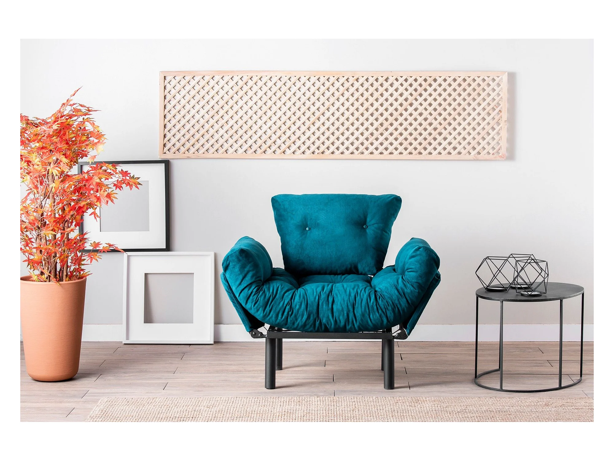 Fauteuil avec accoudoirs mobiles Tresa Velours Bleu canard