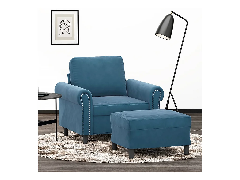 Fauteuil avec repose-pied Bleu 60 cm Velours