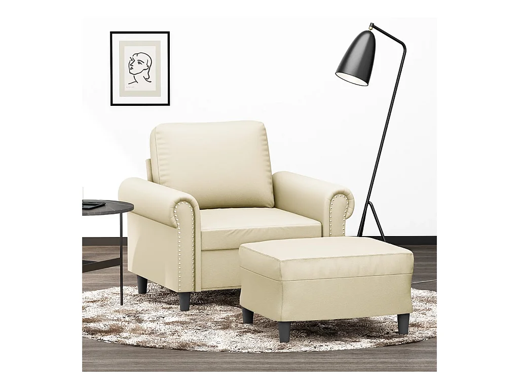 Fauteuil avec repose-pied Crème 60 cm Similicuir