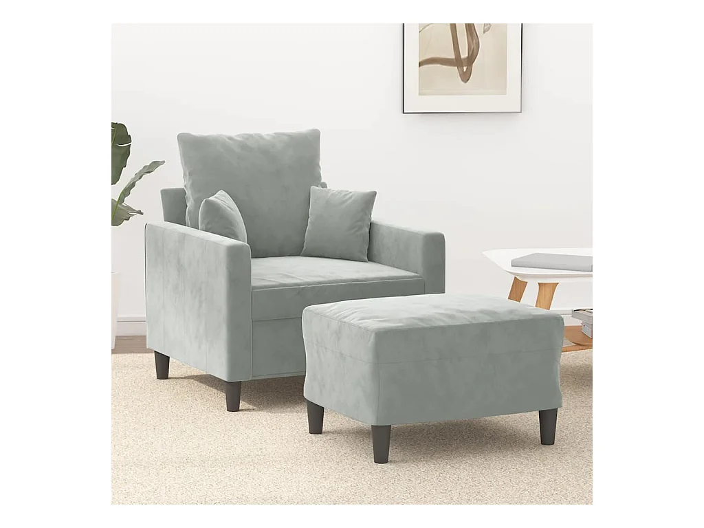 Fauteuil avec repose-pied Gris clair 60 cm Velours