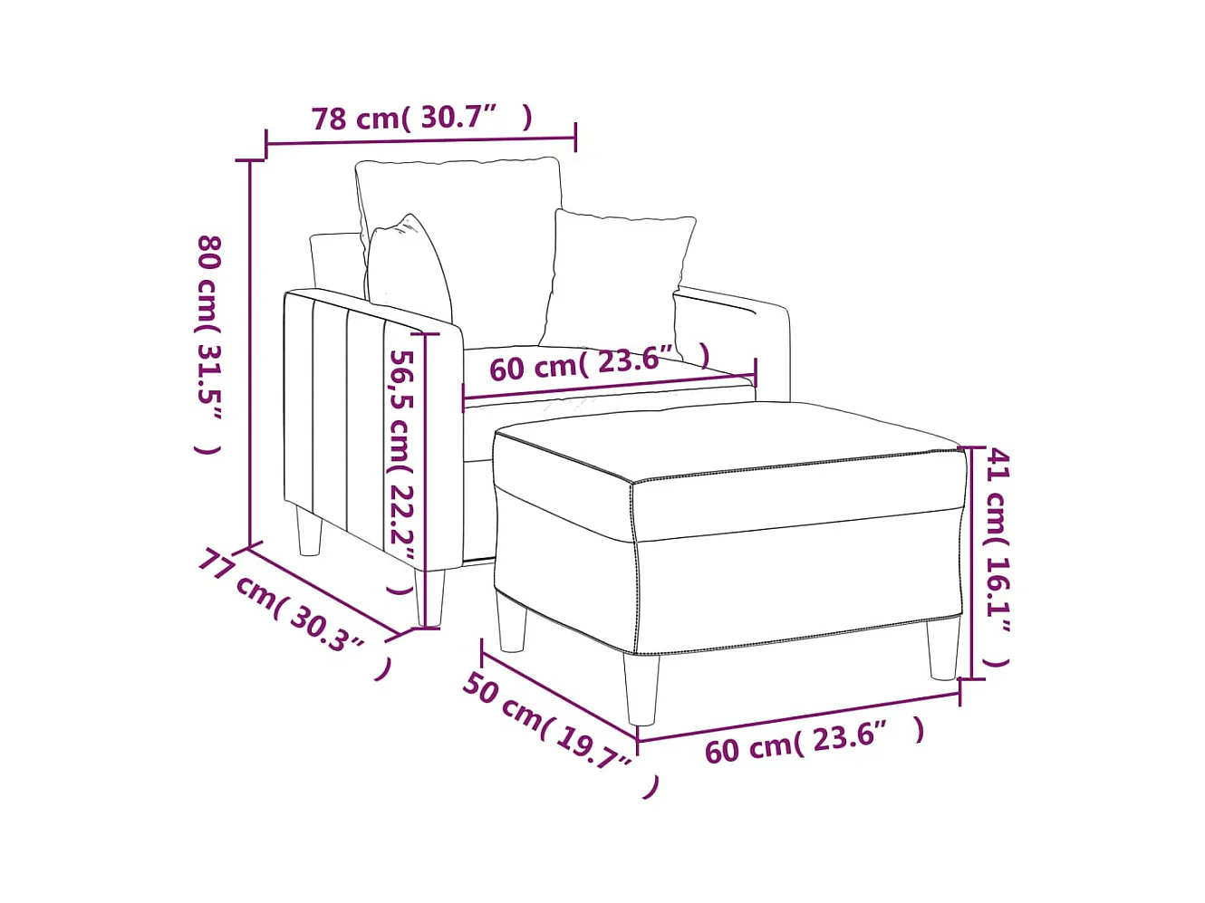 Fauteuil avec repose-pied Gris 60 cm Similicuir