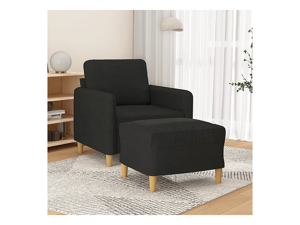 Fauteuil avec repose-pied Noir 60 cm Tissu