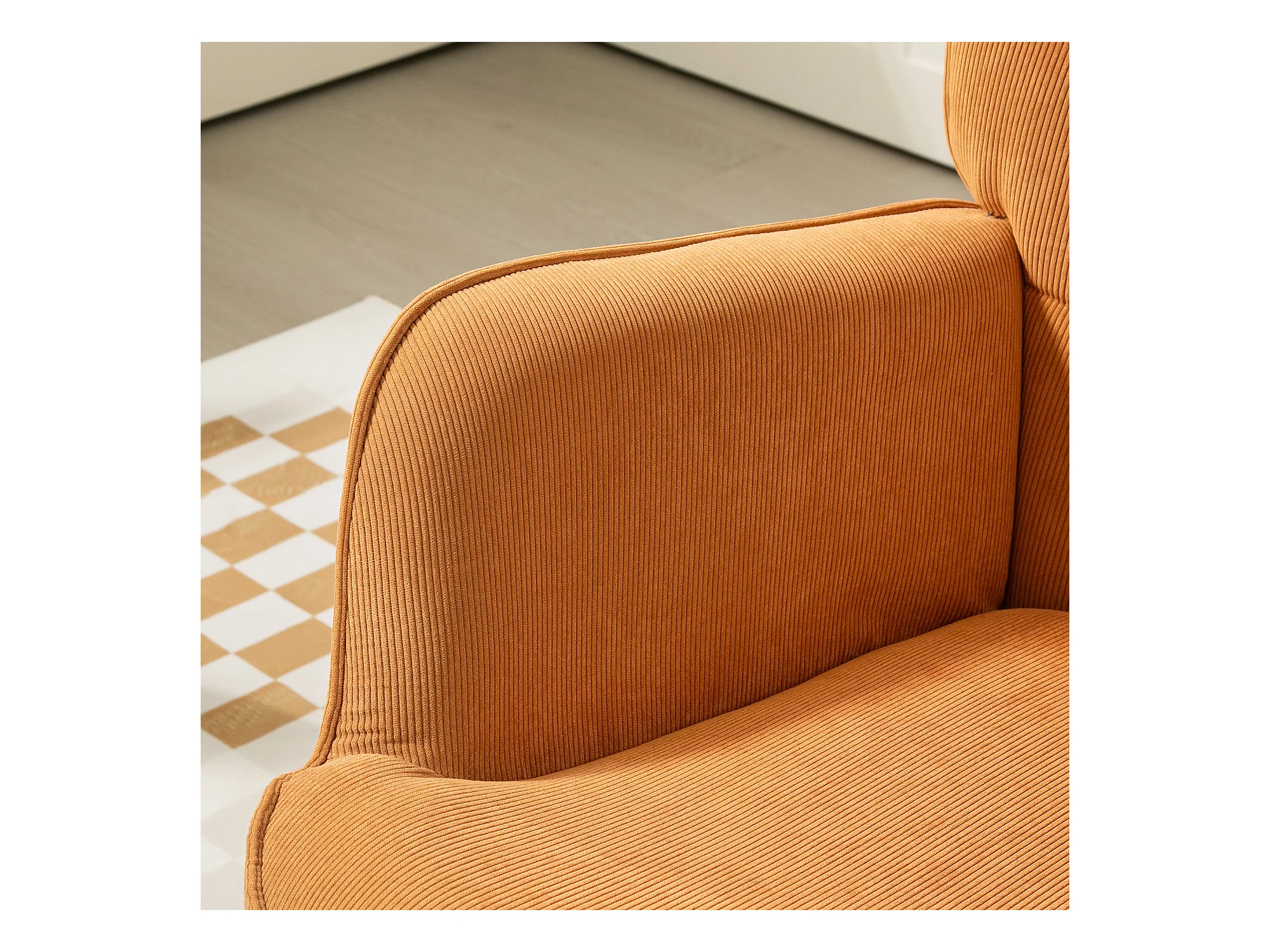 Fauteuil avec repose-pieds, Design avec dossier haut, Tissu velours, Bois, Marron (72x80x101 cm)