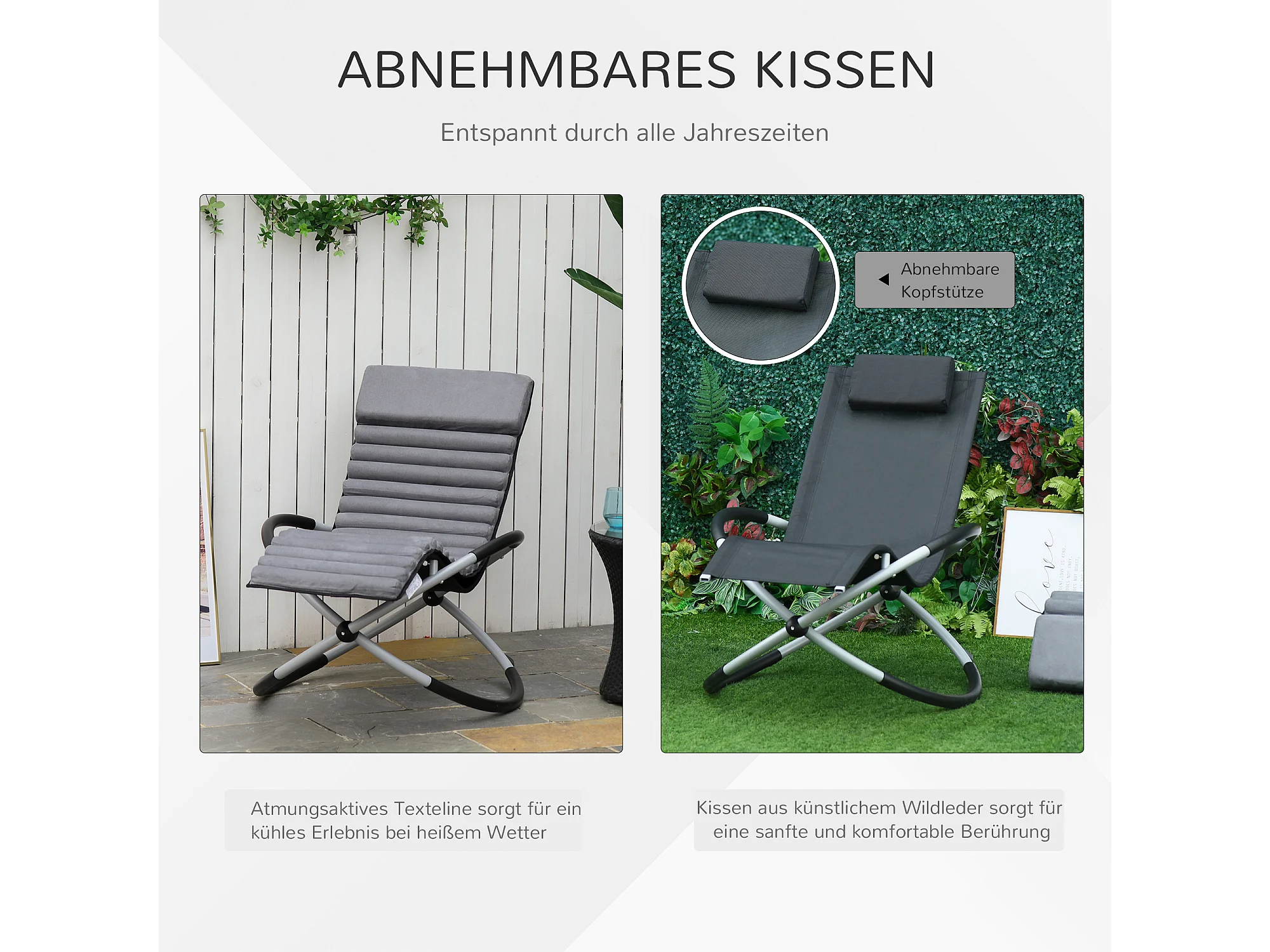Fauteuil balançoire ergonomique 2-en-1, métal et Textilène, noir (145x74x86 cm)