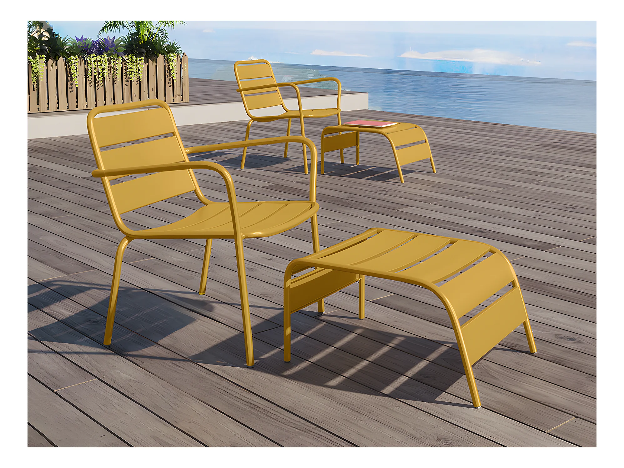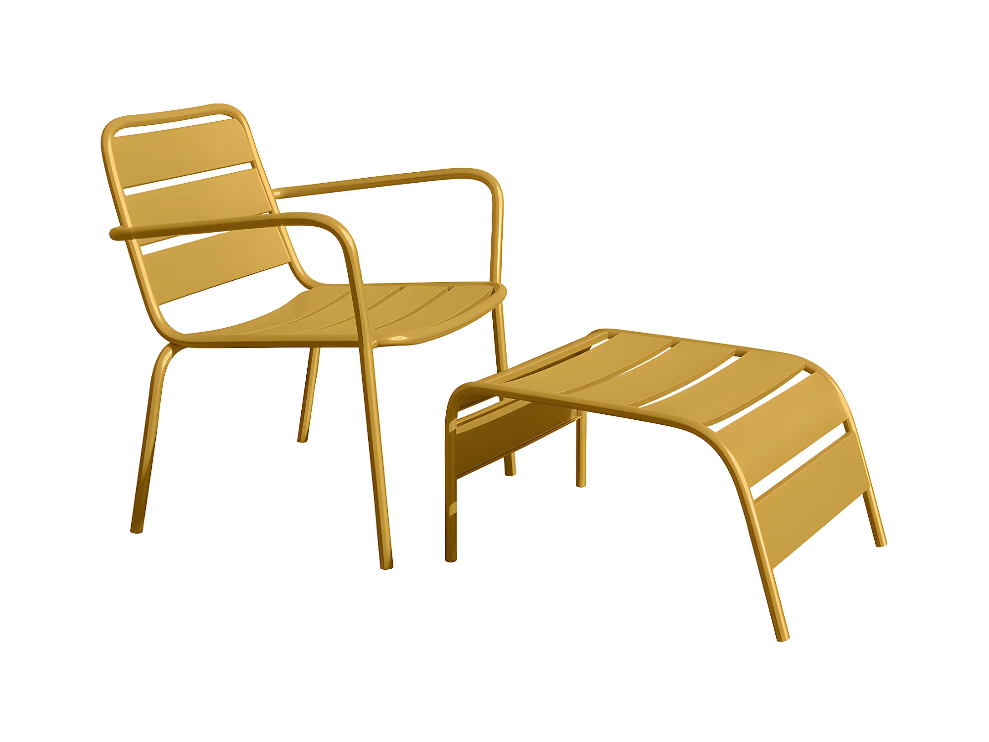 Fauteuil bas de jardin empilable + repose pied en métal - Jaune moutarde - MIRMANDE de MYLIA