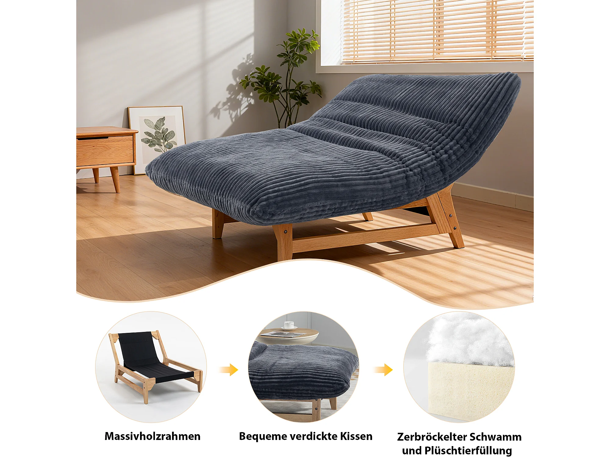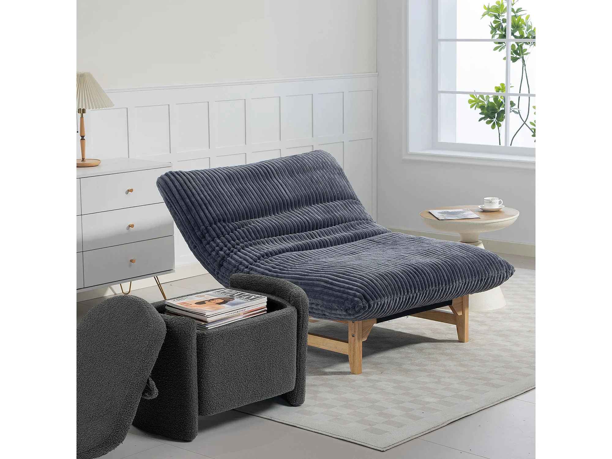 Fauteuil bean bag en tissu velours côtelé gris - sans accoudoirs