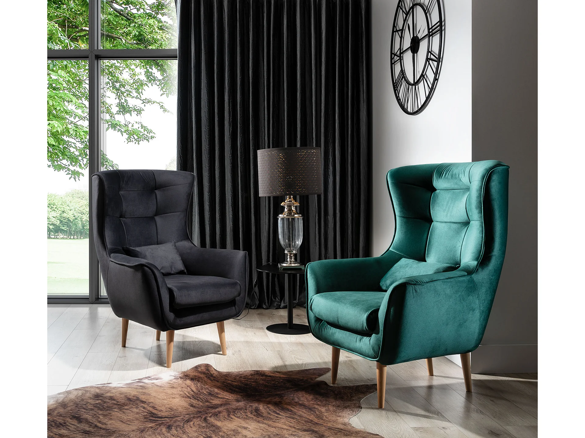 Fauteuil bergère velours bleu marine capitonné Lazza 80cm