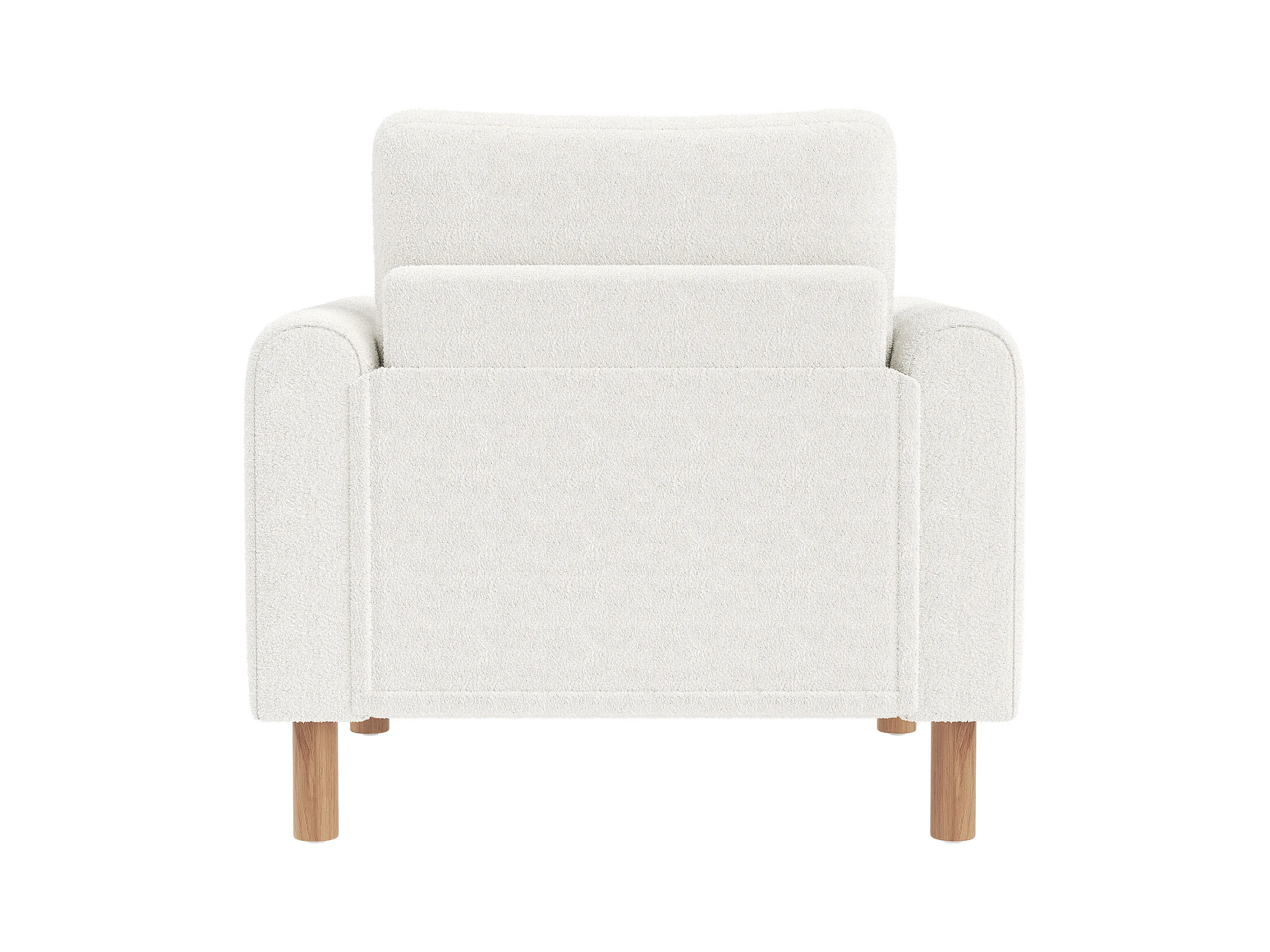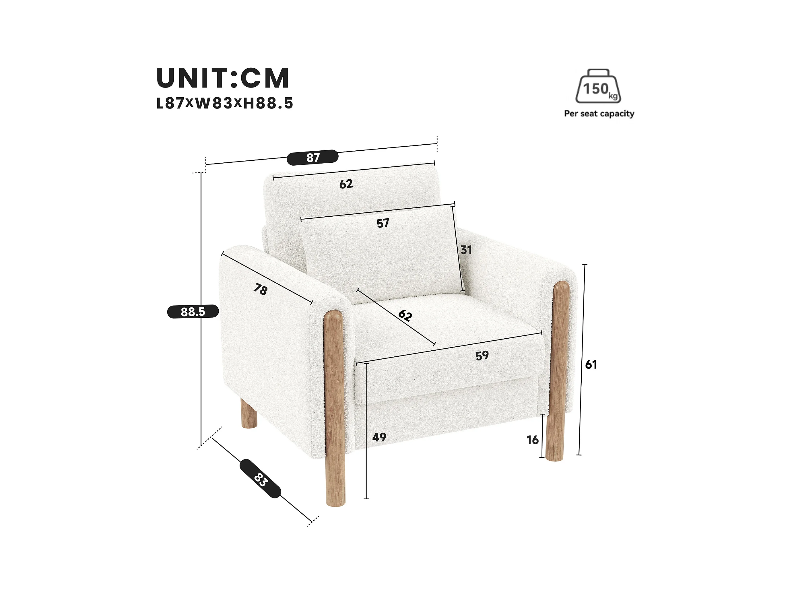 Fauteuil blanc - Fauteuil avec dossier et accoudoirs - pieds et coussins en bois - velours teddy
