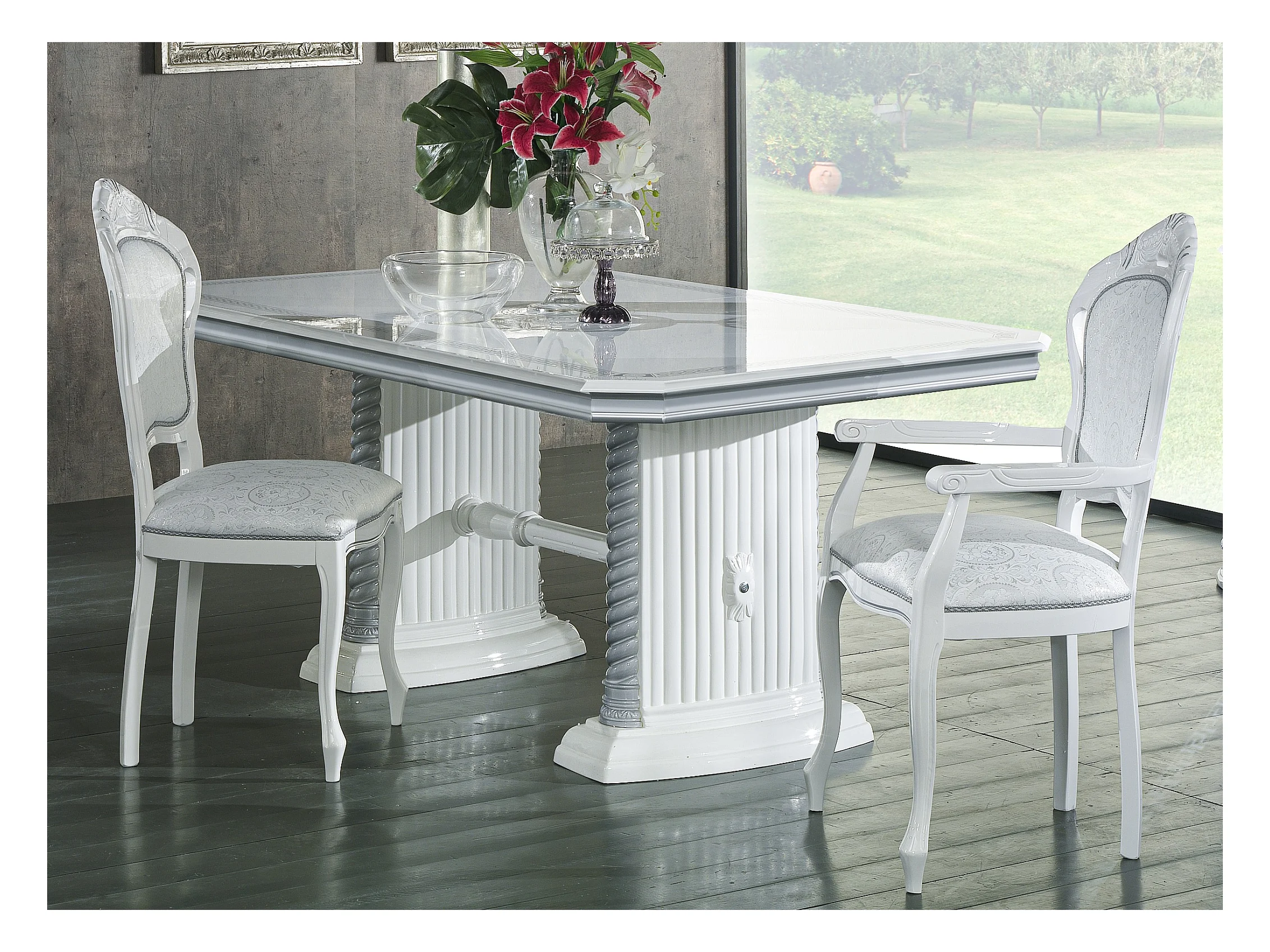 Table à manger extensible AMELLE - 6 à 8 personnes - MDF Laqué Blanc