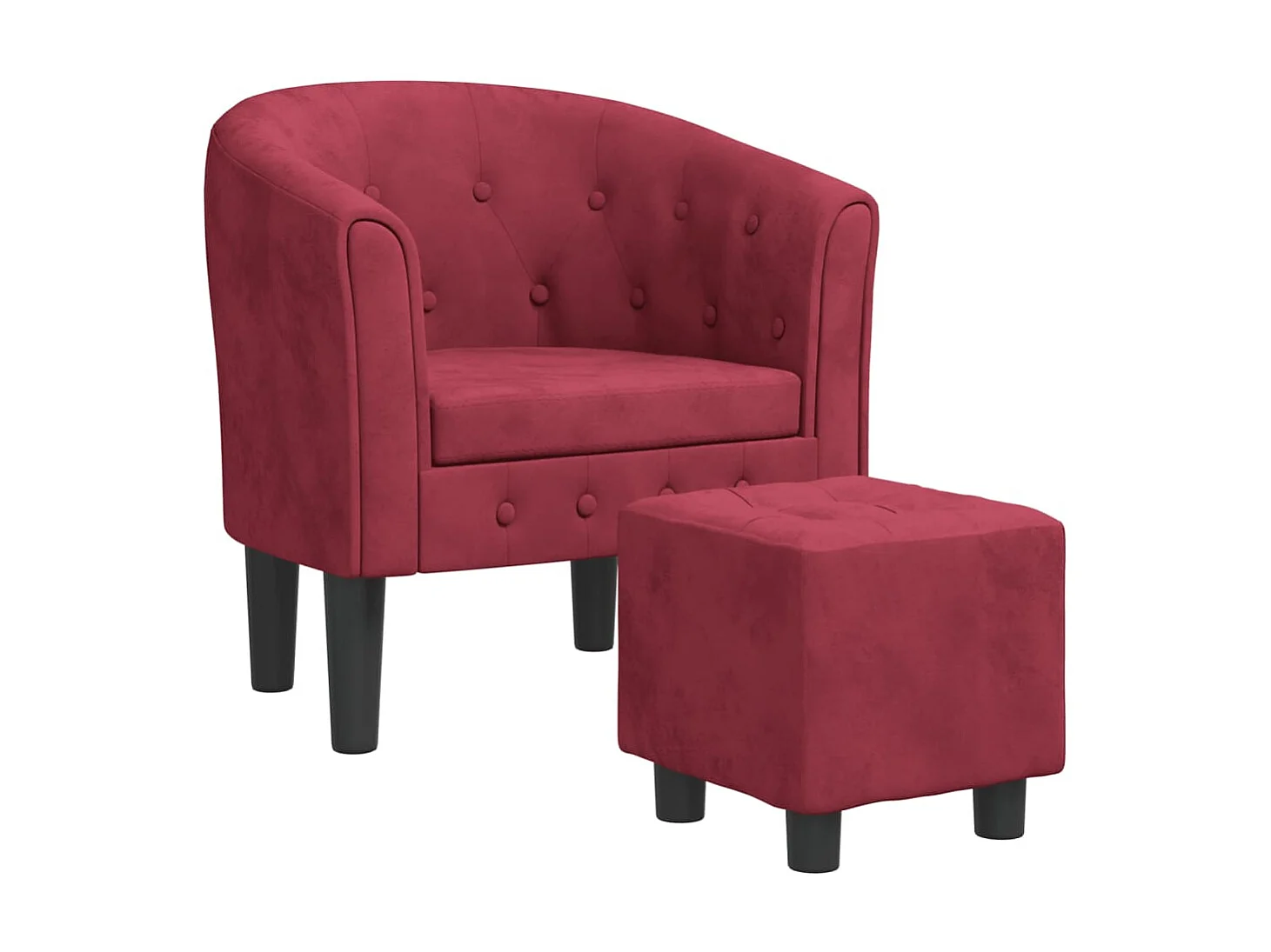 Fauteuil cabriolet avec repose-pied rouge bordeaux velours SEF66374