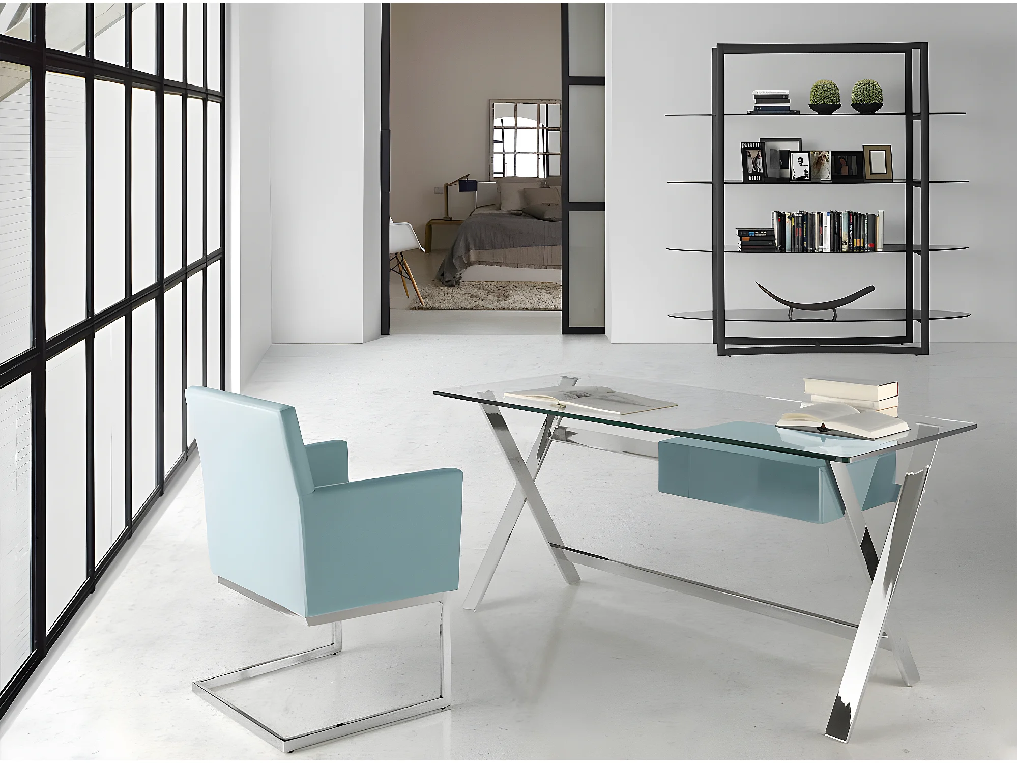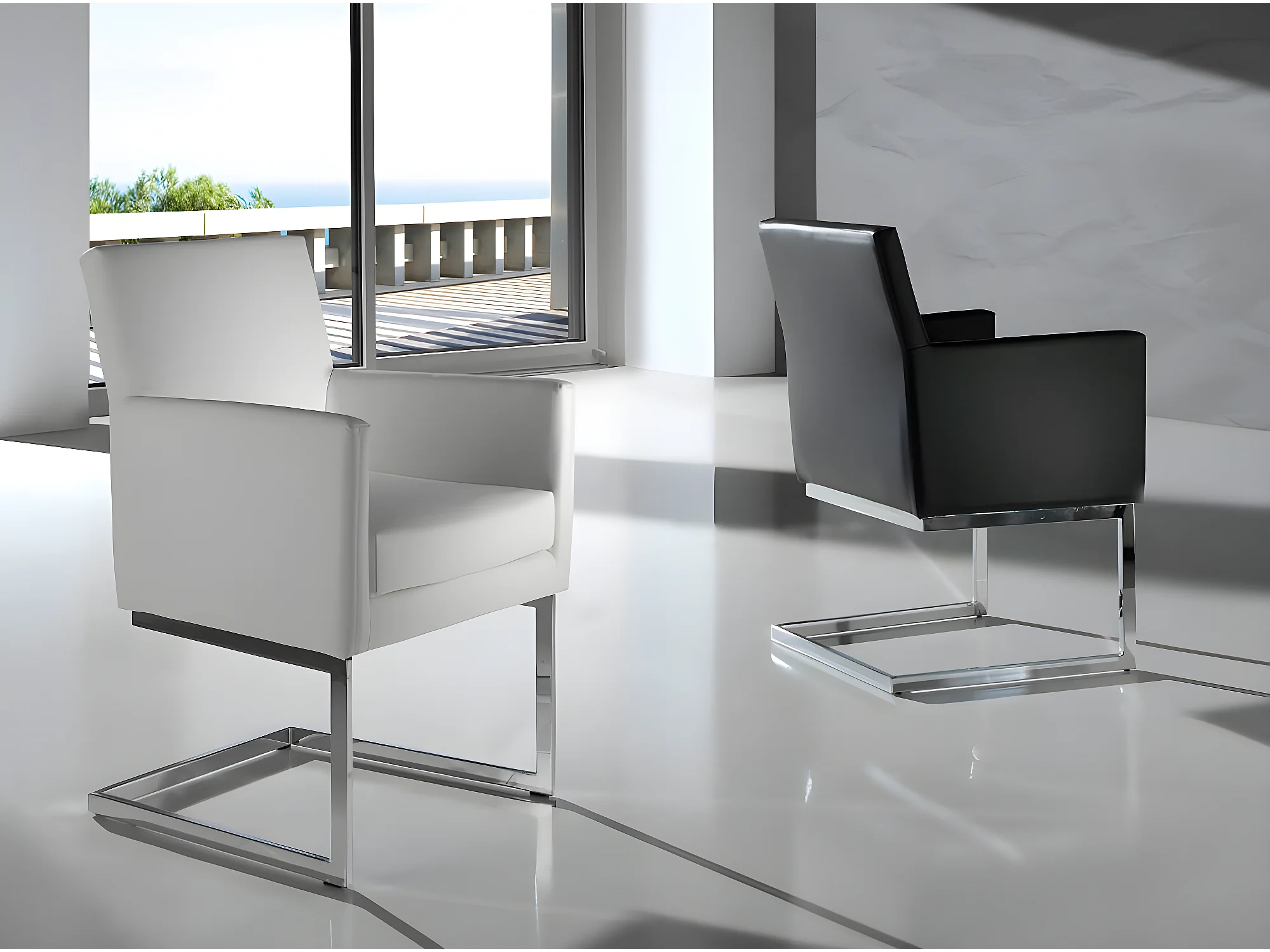 Fauteuil capitonné simili cuir et pieds acier chromé Body-Couleur Aqua 00 Blanc