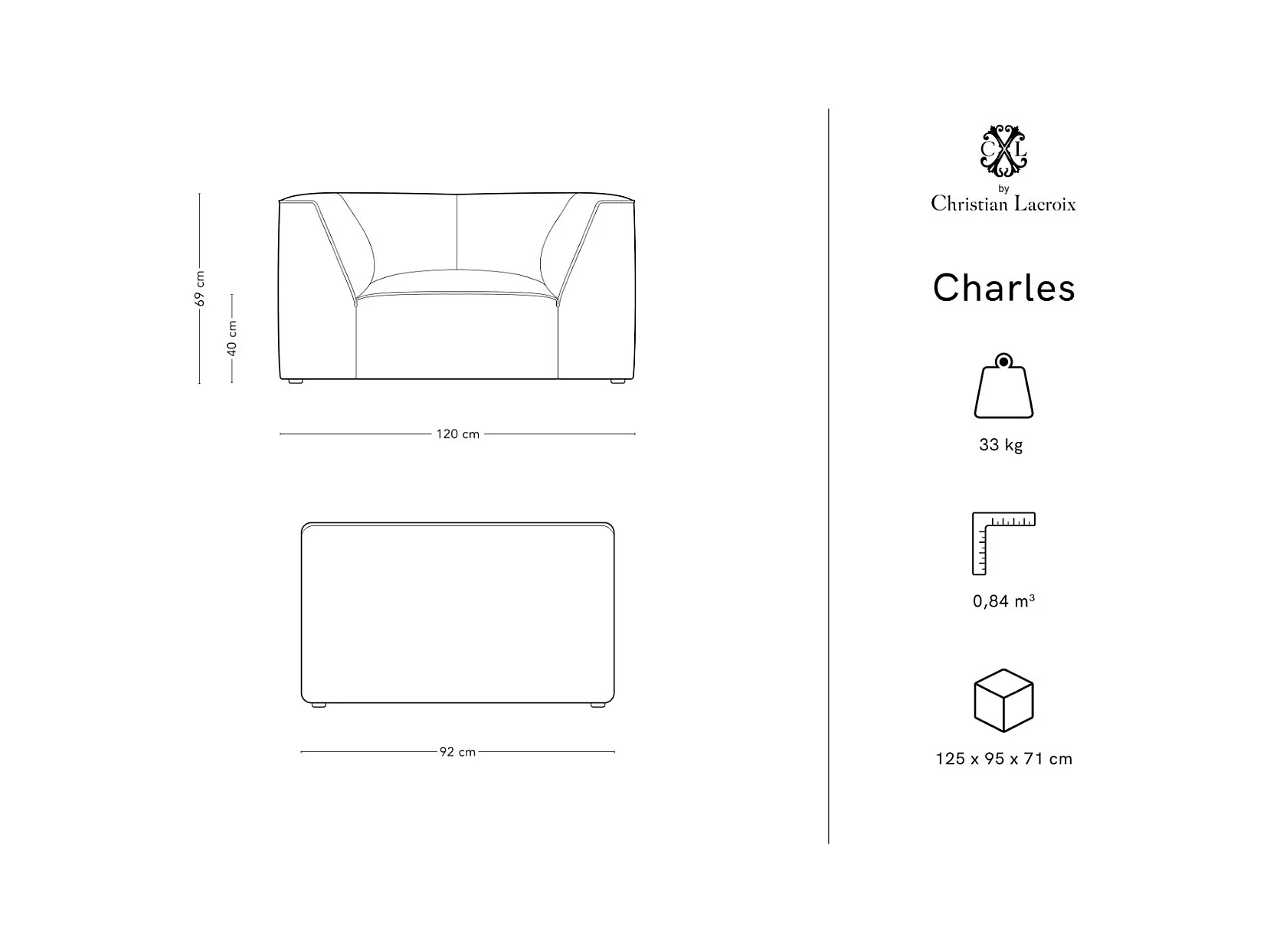 CXL by Christian Lacroix - Fauteuil "Charles" en velours gris clair - 120x92x69cm