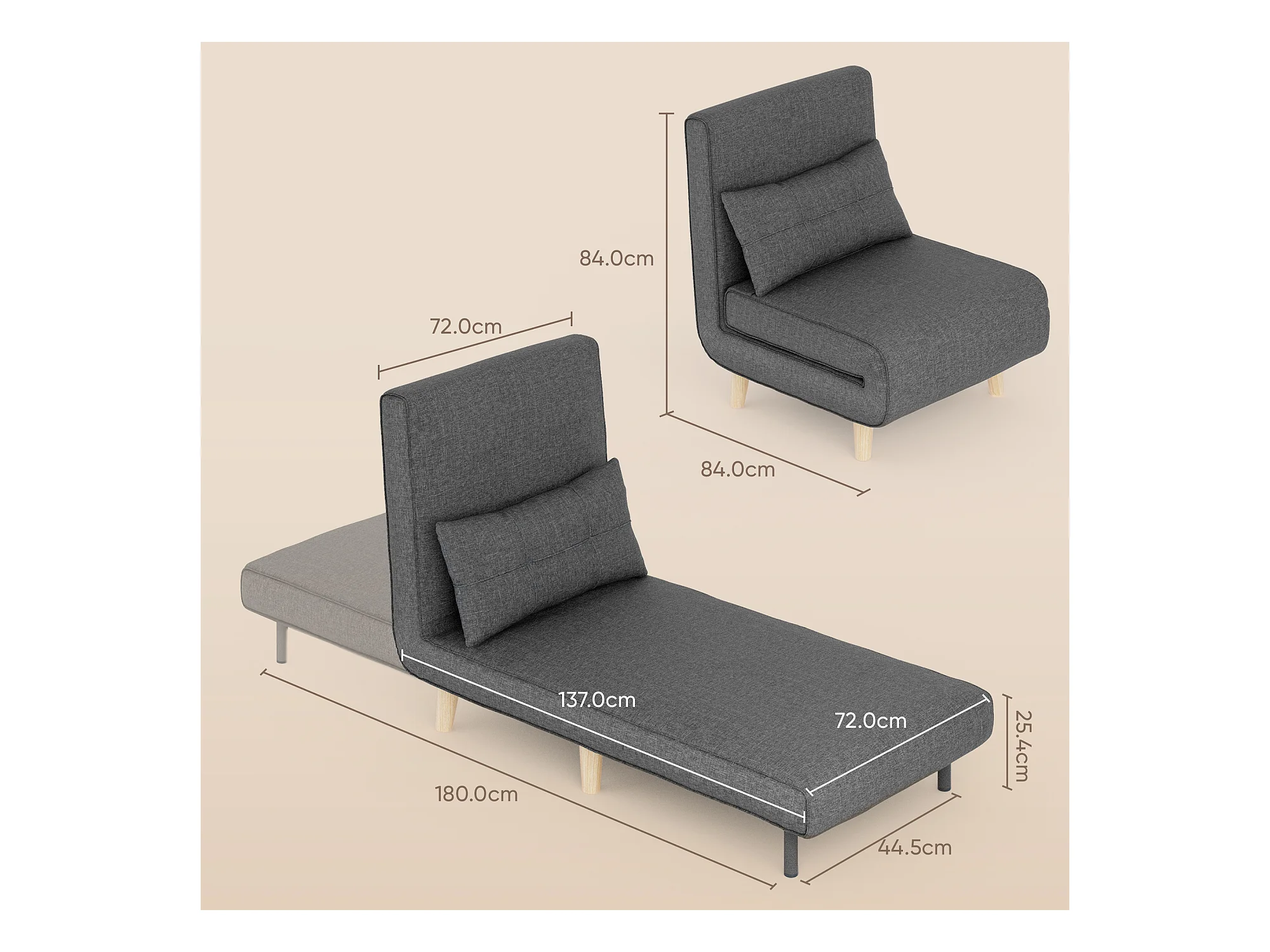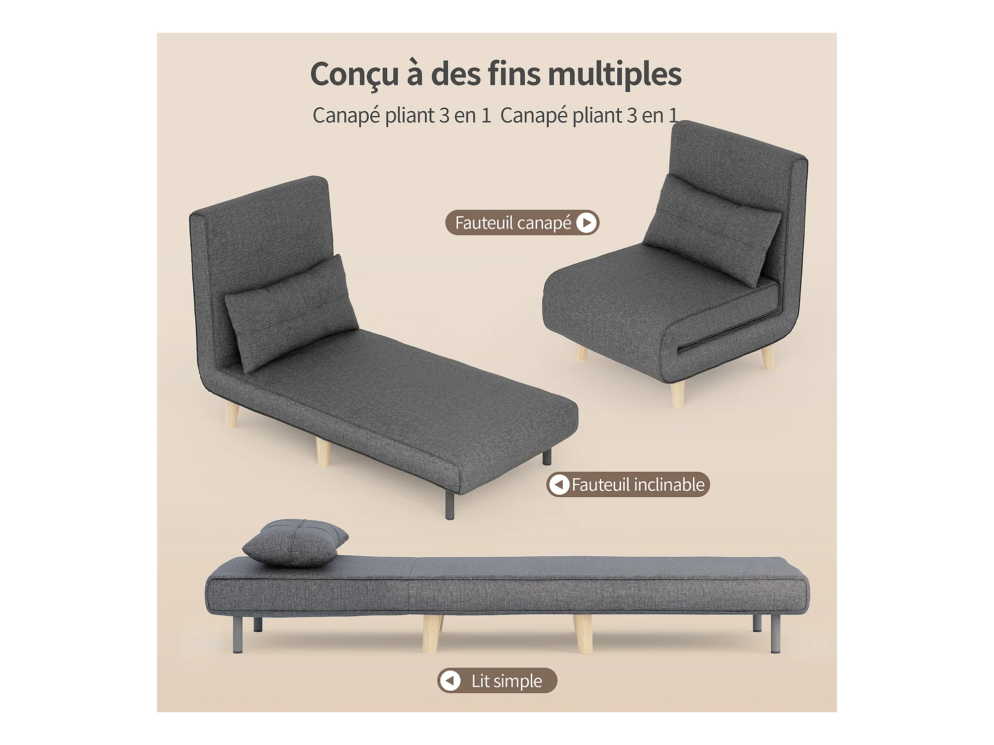 Fauteuil Convertible Bealife Fauteuil Lit Canapé 1 Place Chaise Longue Coussin Réglable Pliante AR50