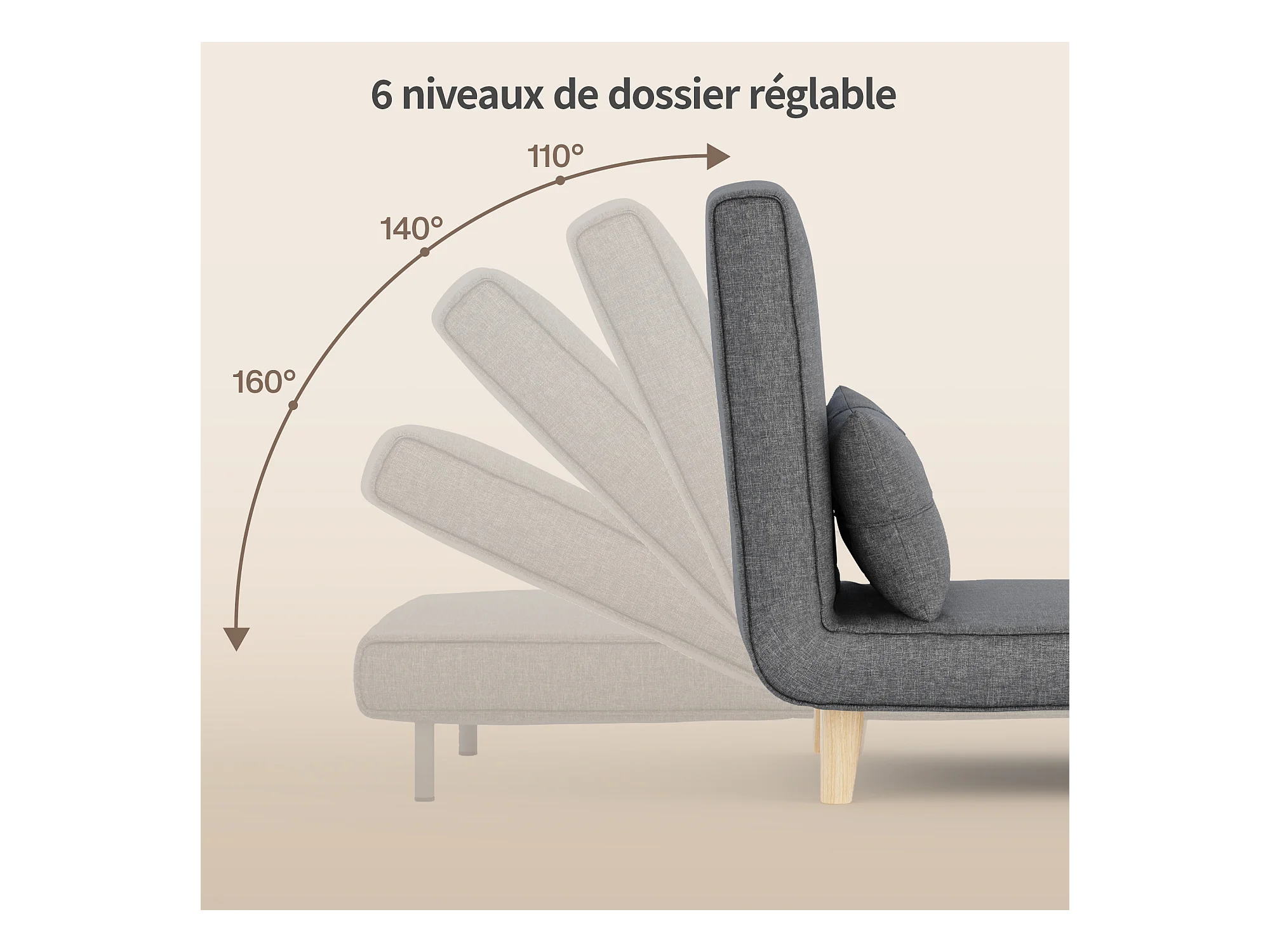 Canapé convertible 2 en 1 gris 112x174x55 cm clair tissu LODW37034