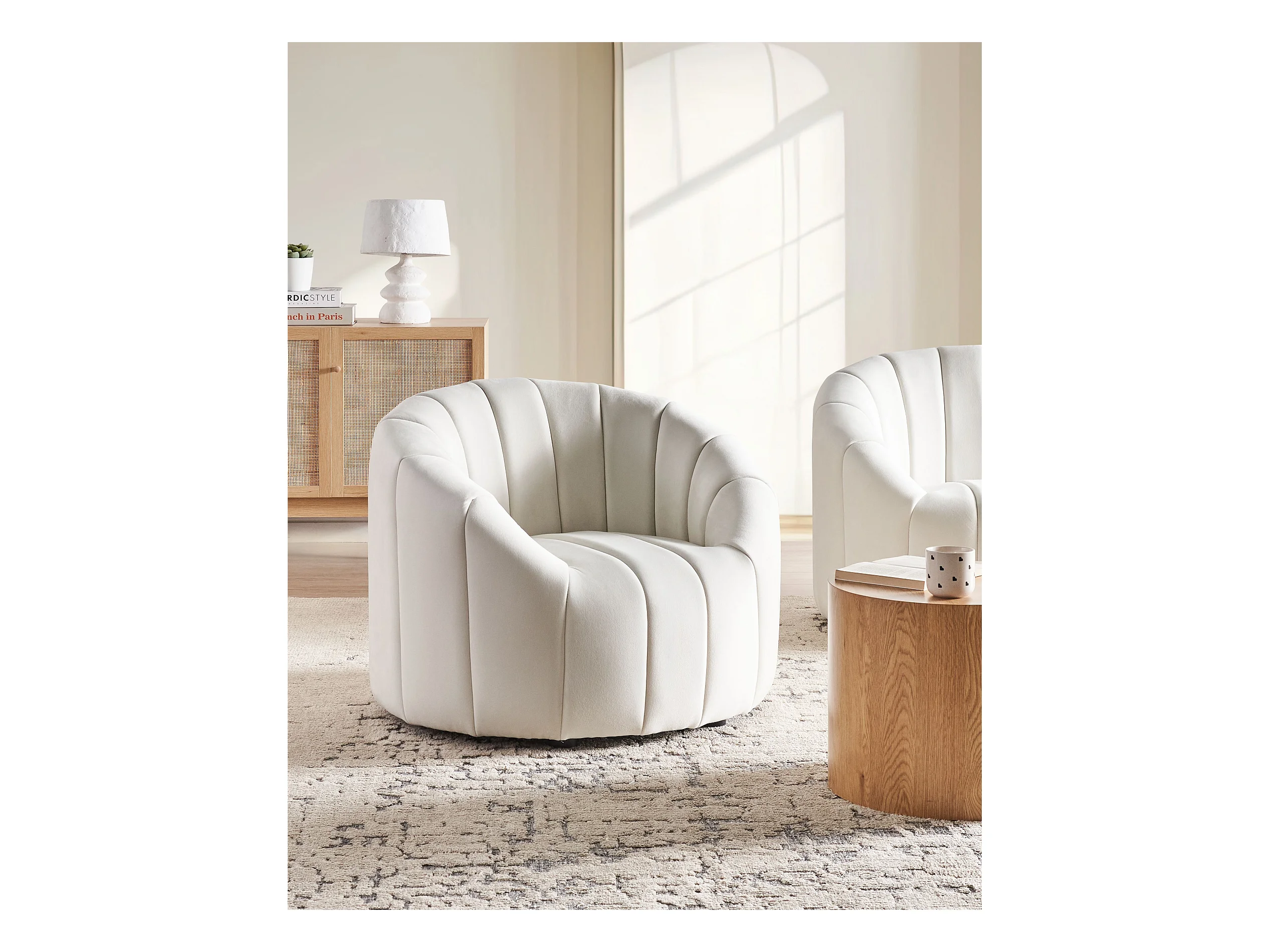 Fauteuil MALUNG Velours Blanc cassé