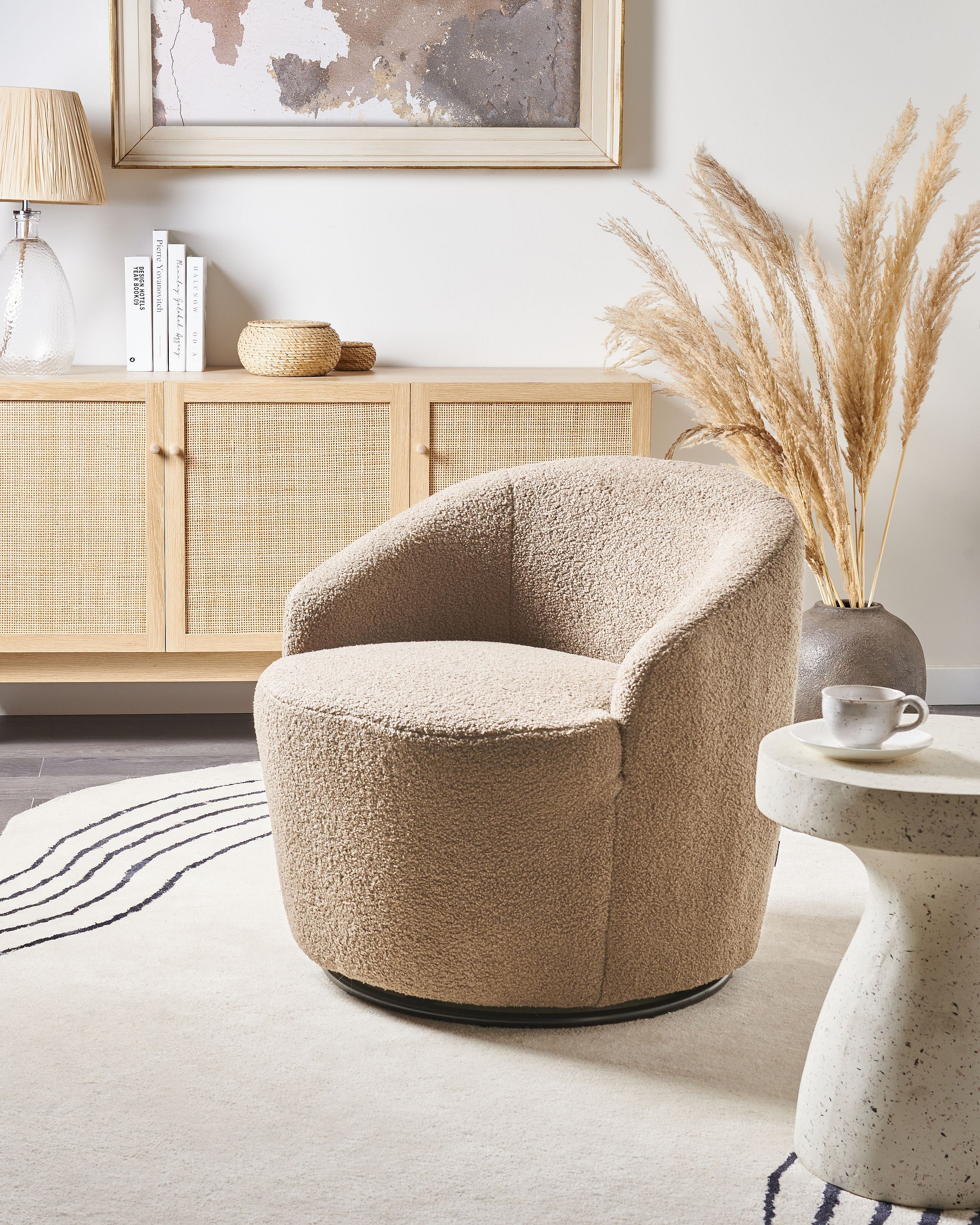 Fauteuil pivotant DAVIK Bouclé Taupe